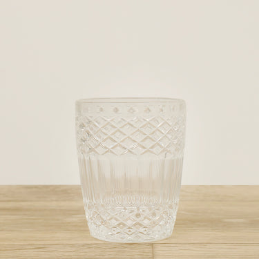 Feast your eyes on our etched Glass Tumbler crafted with elegance and sophistication, it is a vision of clarity in sparkling glass. Its design exudes timeless charm, making it a perfect addition to any table setting or special occasion. Material: Glass