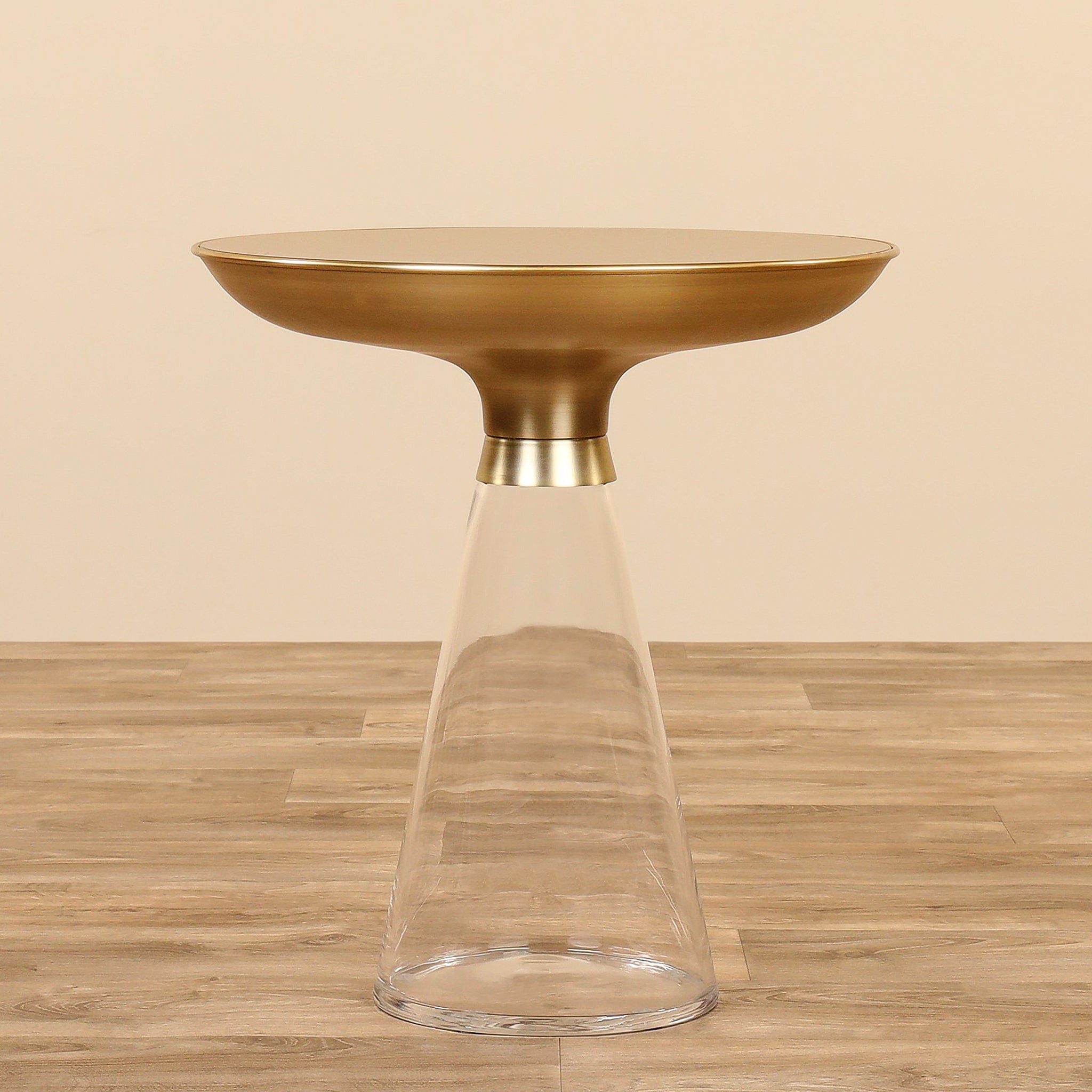 The bases on the Hazel Tables are made of crystal clear glass on top of which sit sturdy metal tabletops that appear to be floating above the bases. Perfect for accenting a seating area this table set is an easy way to lend a fresh look to a decorating style.