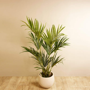 A symbol of immortality and eternity, this Kentia Palm will stay lush and green forever. Place this artificial tree in the corner of your living room to add some trendy tropical vibes to your interior. This tree comes fully assembled – simply bend out the branches and place in a pot to complete the look.