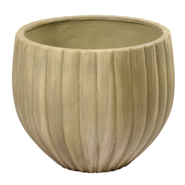 Ideal for showcasing an artificial potted plant or tree, our Large Ficonstone Tree Pot offers stylish looks for both indoor and outdoor settings. Its versatile antique green finish and pumpkin ribbing effortlessly complement various colors and patterns, providing the perfect finishing touch to your decor.