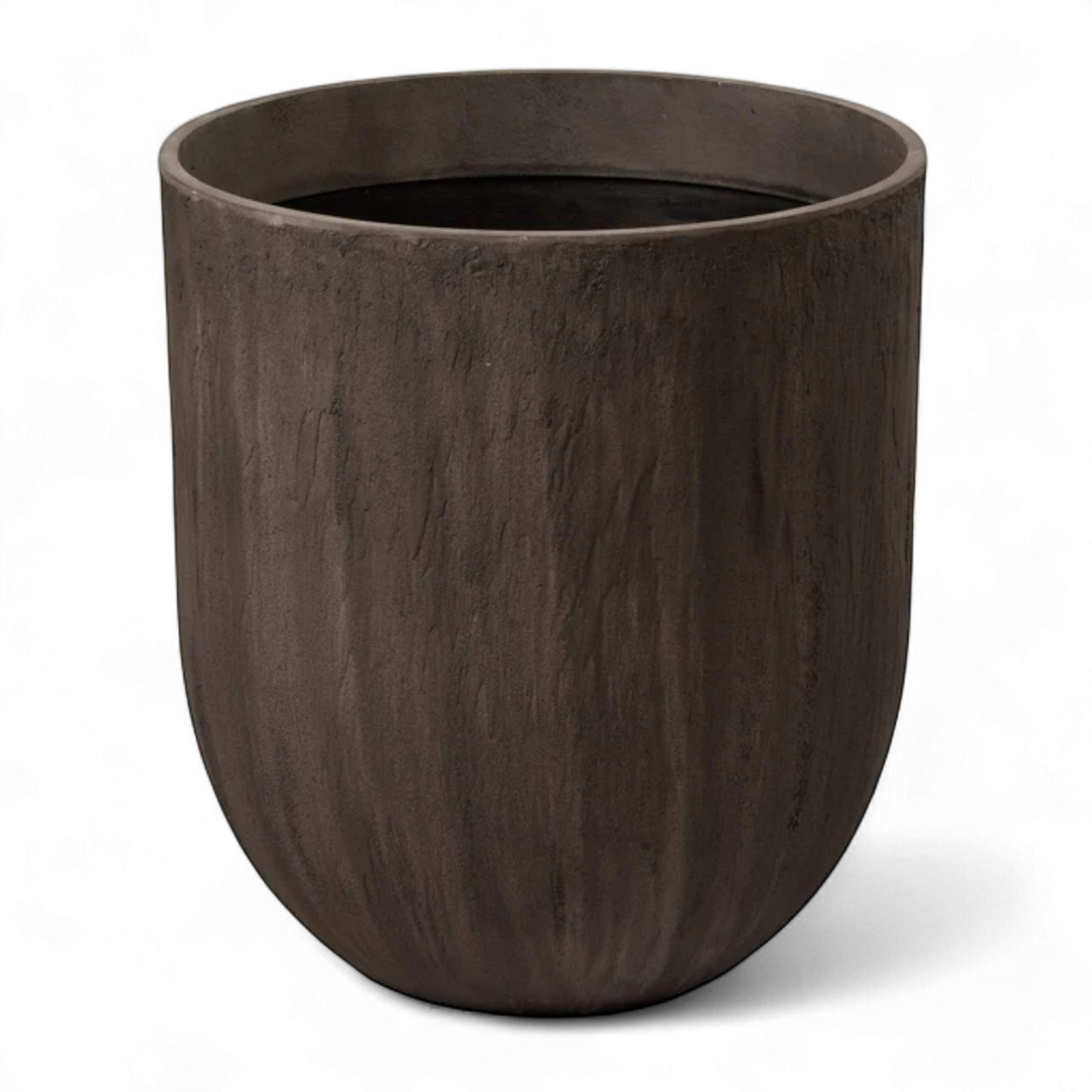 Ideal for showcasing an artificial potted plant or tree, our Large Round Sandfiber Tree Pot offers stylish looks for both indoor and outdoor settings. Its versatile charcoal finish and vertical scratched design effortlessly complement various colors and patterns, providing the perfect finishing touch to your decor.