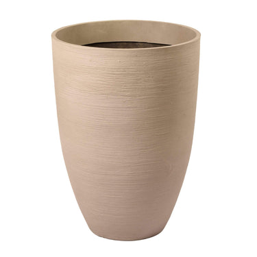 Ideal for showcasing an artificial potted plant or tree, our Large Round Sandfiber Tree Pot offers stylish looks for both indoor and outdoor settings. Its versatile taupe sand finish and horizontal scratched design effortlessly complement various colors and patterns, providing the perfect finishing touch to your decor.