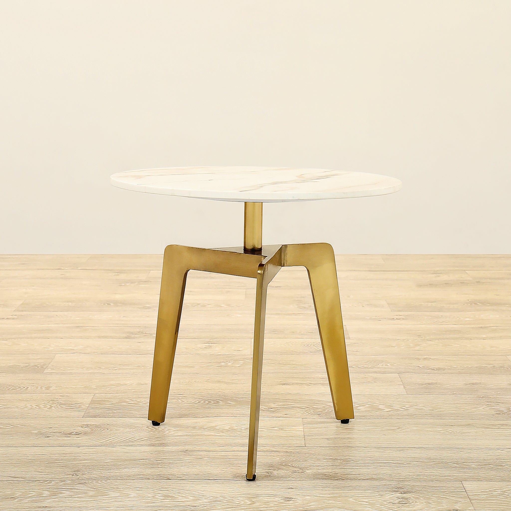 Enjoy uncluttered contrast with the Lombard Side Table. Built with a sleek powder-coated metal frame this mid-century modern-inspired side table has clean lines and flared legs. Its airy silhouette is rounded out by a beautiful sintered stone surface and wonderful contrast.