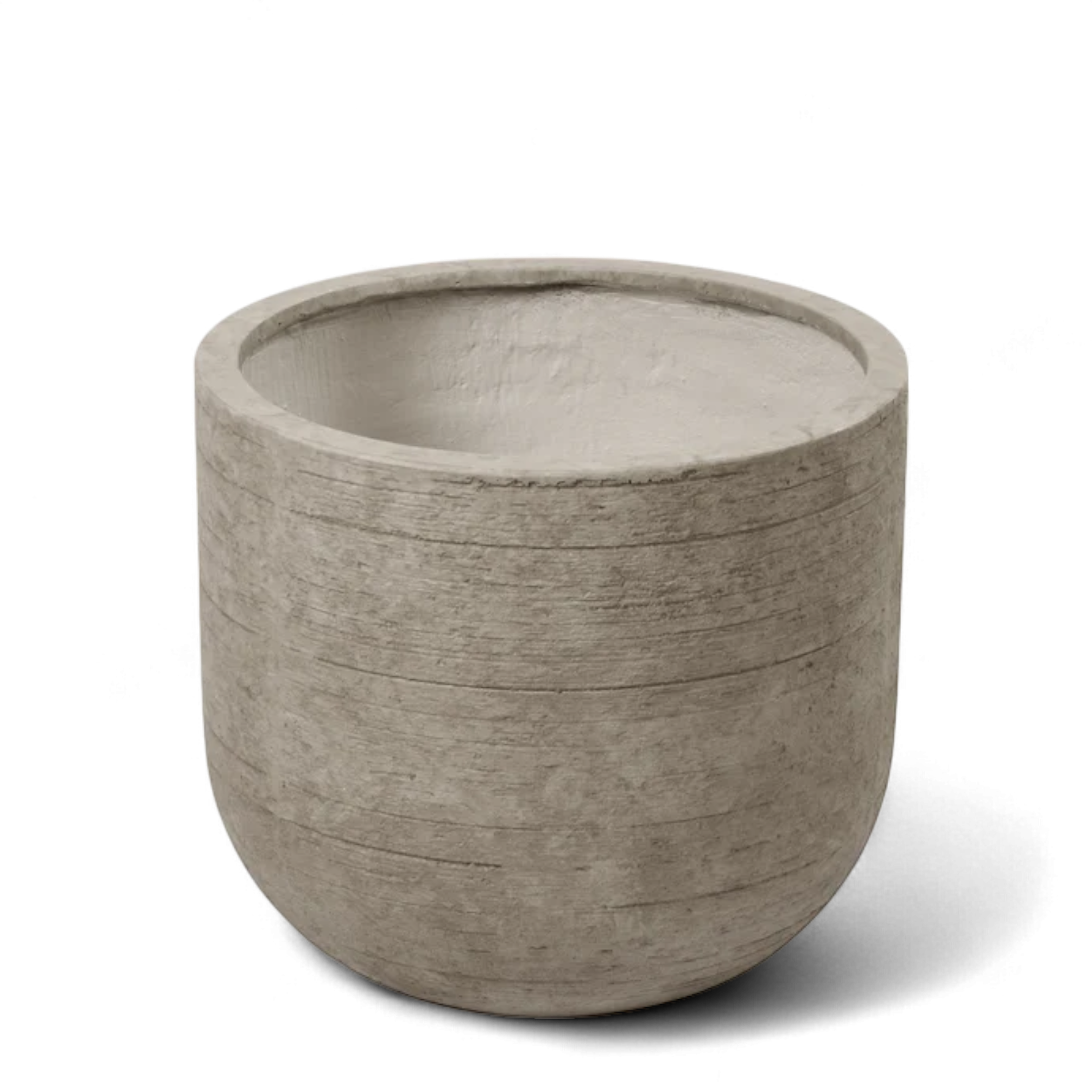 Crafted in weather-resistant ficonstone, our Medium Round Tree Pot is ideal for indoor or outdoor use. Place a large shrub, bush, or faux tree in this contemporary planter for stability and to elevate the look of your real or artificial plant. The deep scratches are an innovative way to lend textural interest to an otherwise austere planter.