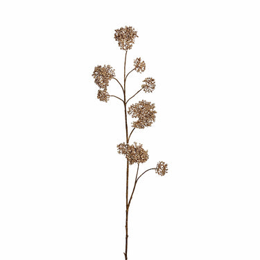 Crafted with a beautiful metallic finish our Artificial Skimmia looks just like the real thing but better. Recognizable by its tiny round flower clusters, this Metallic Skimmia spray is a wonderful way to add interest and dimension to any arrangement.