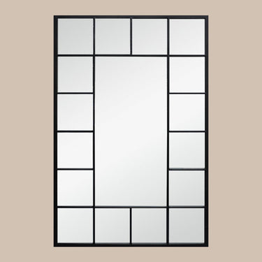 An updated take on a classic our Wall Hanging Mirror features a grid-like metal design to create a wonderful windowpane effect. This elegant mirror is finished in black to pair easily with existing finishes and styles while lending sparkle and interest to your decor.