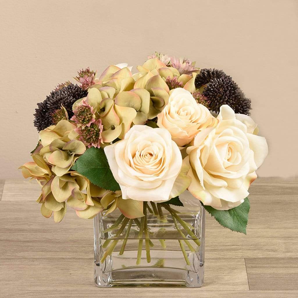 A customer favorite, this mixed floral arrangement is so elegant. Handcrafted by actual florists, each individual stem looks incredibly lifelike. Place this high-quality arrangement on your coffee table next to a fragrant candle and enjoy a romantic setting all year round.
