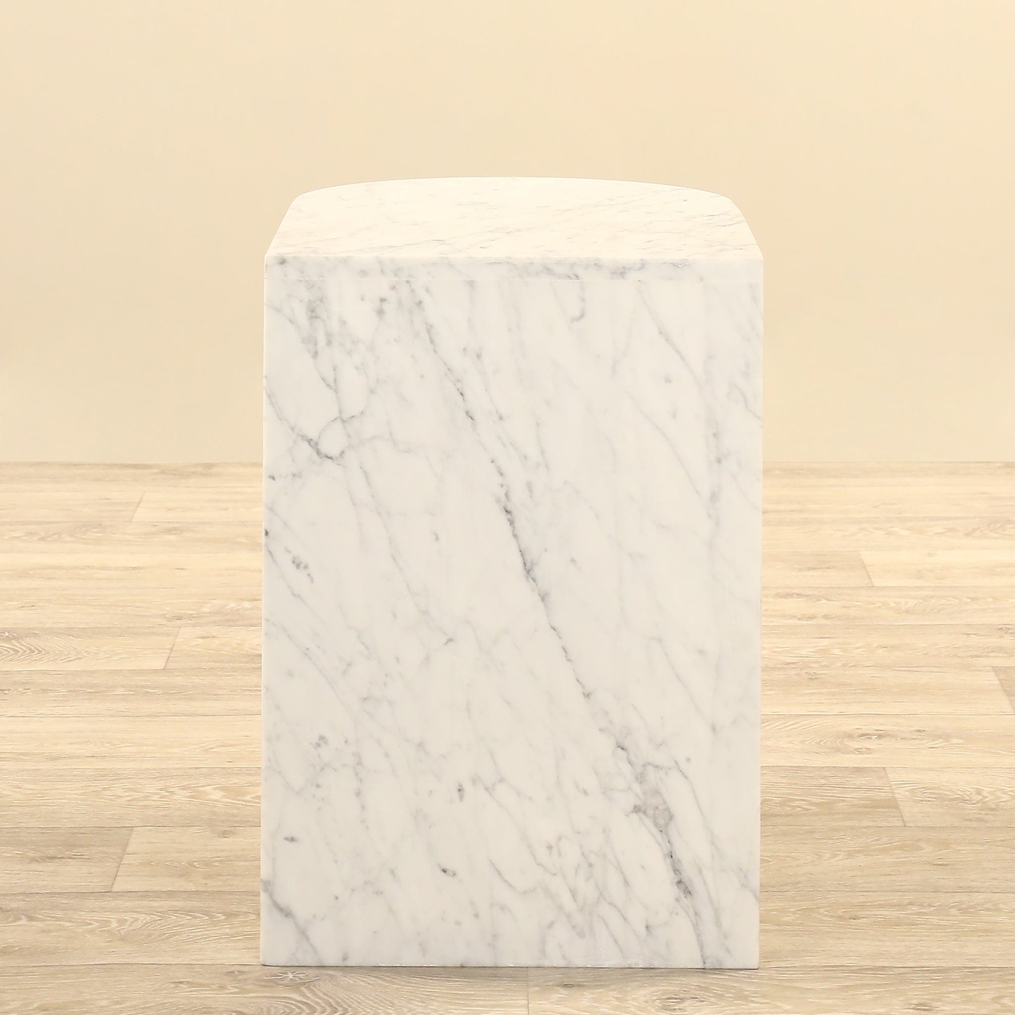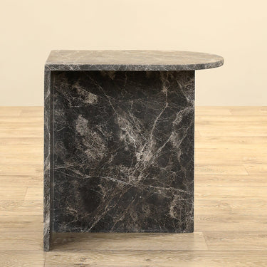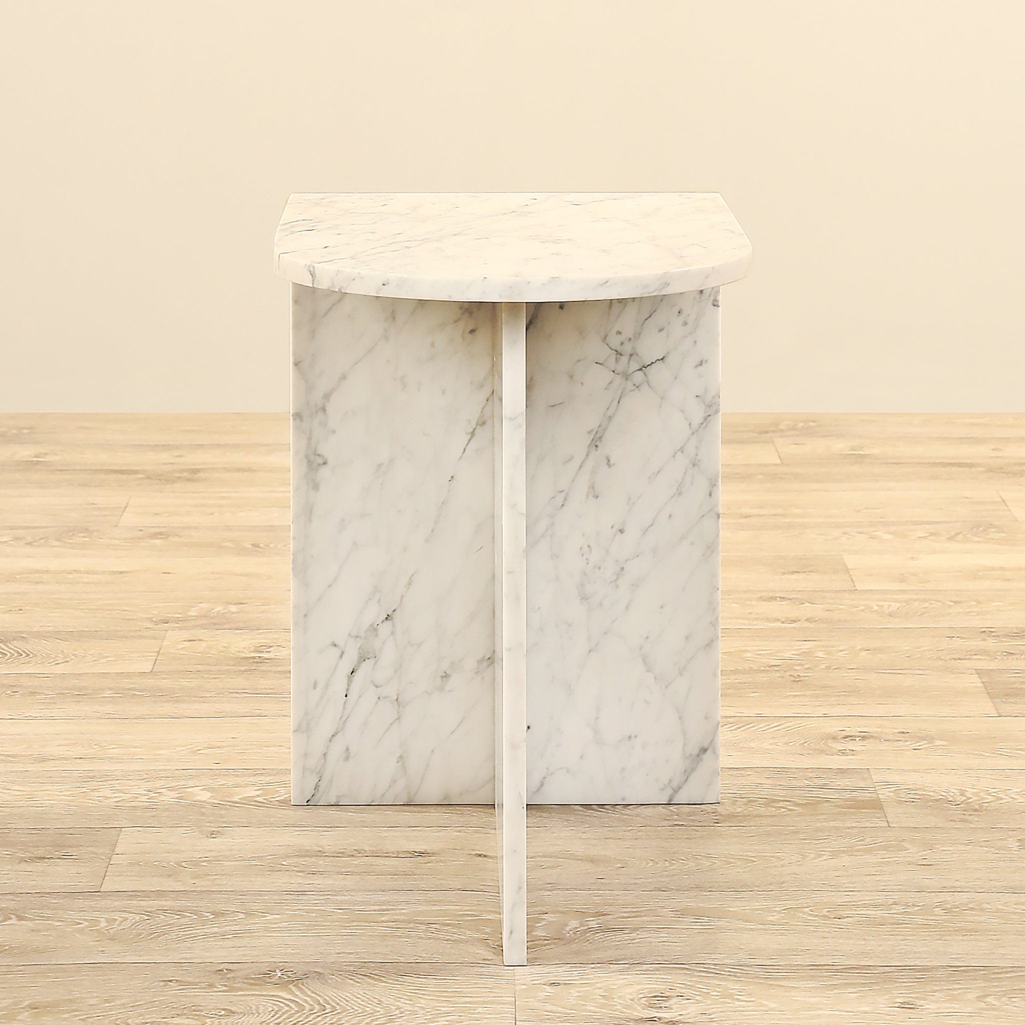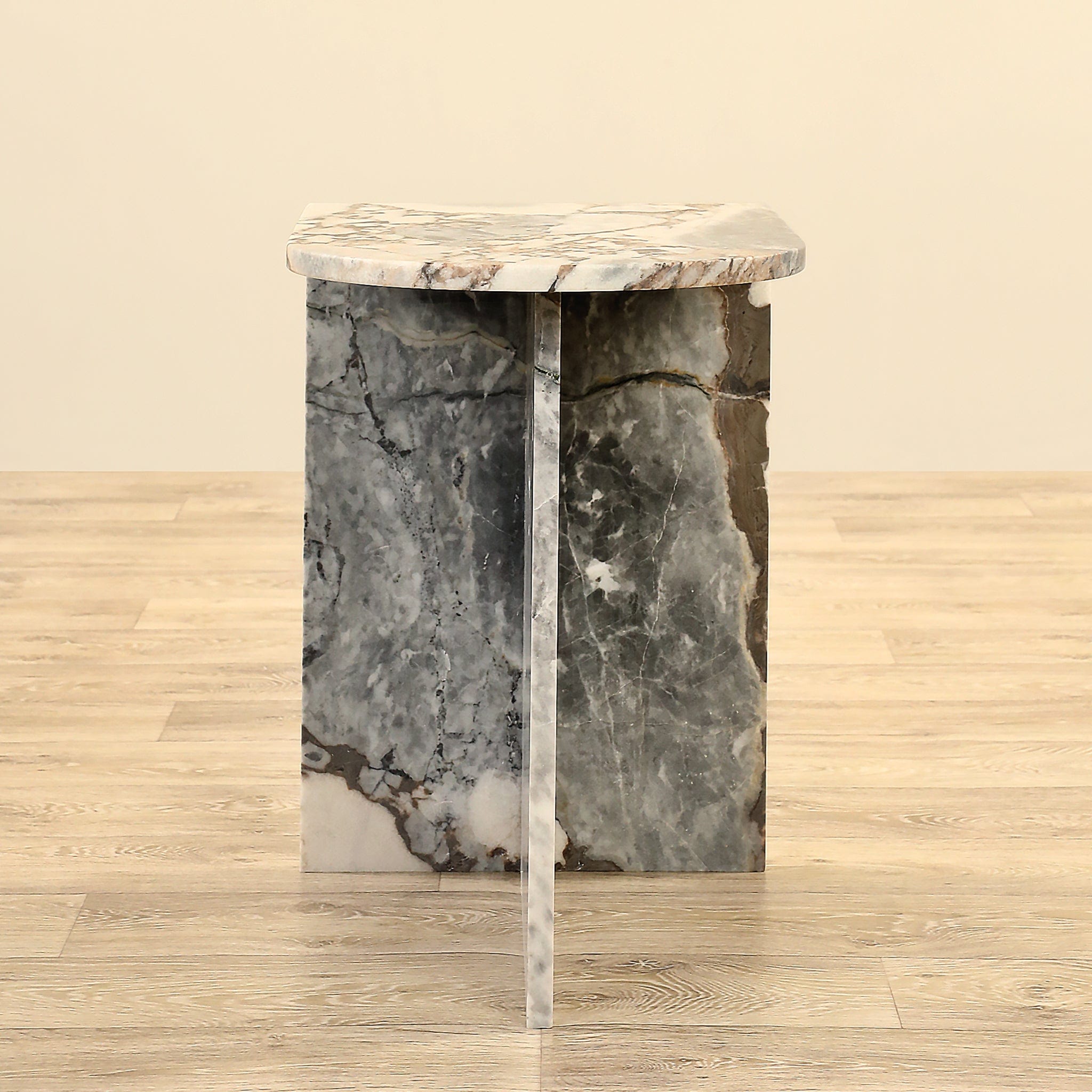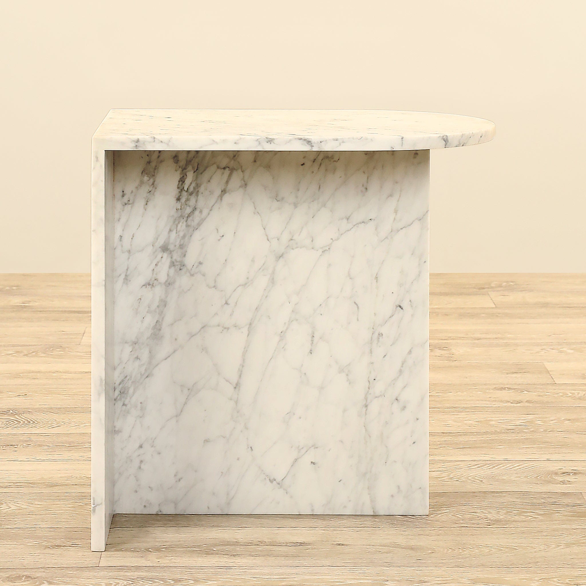 The sculptural style of the Morano Side Table will lend effortless calm to a living space. Created in beautifully veined marble this side table has a wonderful geometric shape to lend depth and interest to a space as well as sophisticated style.