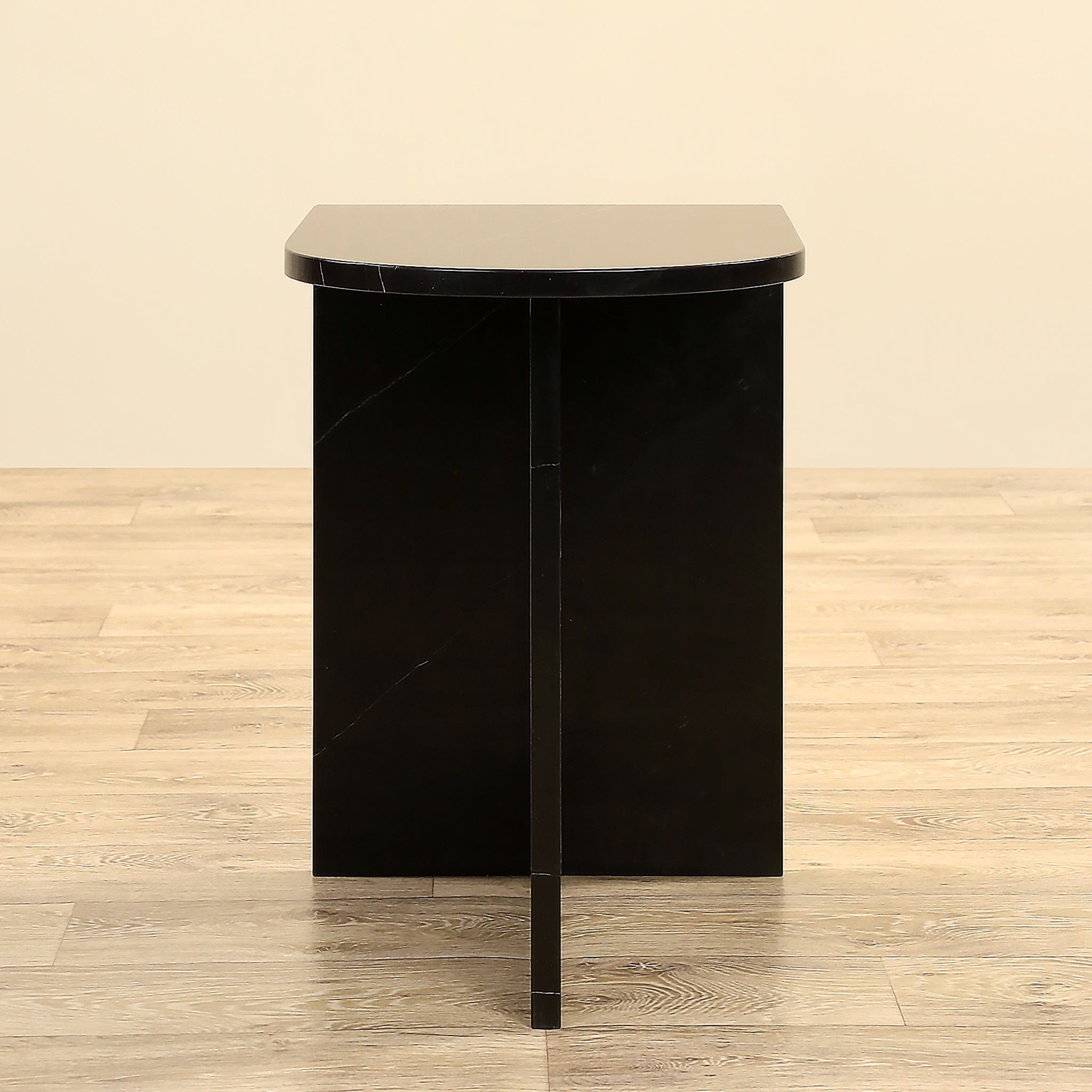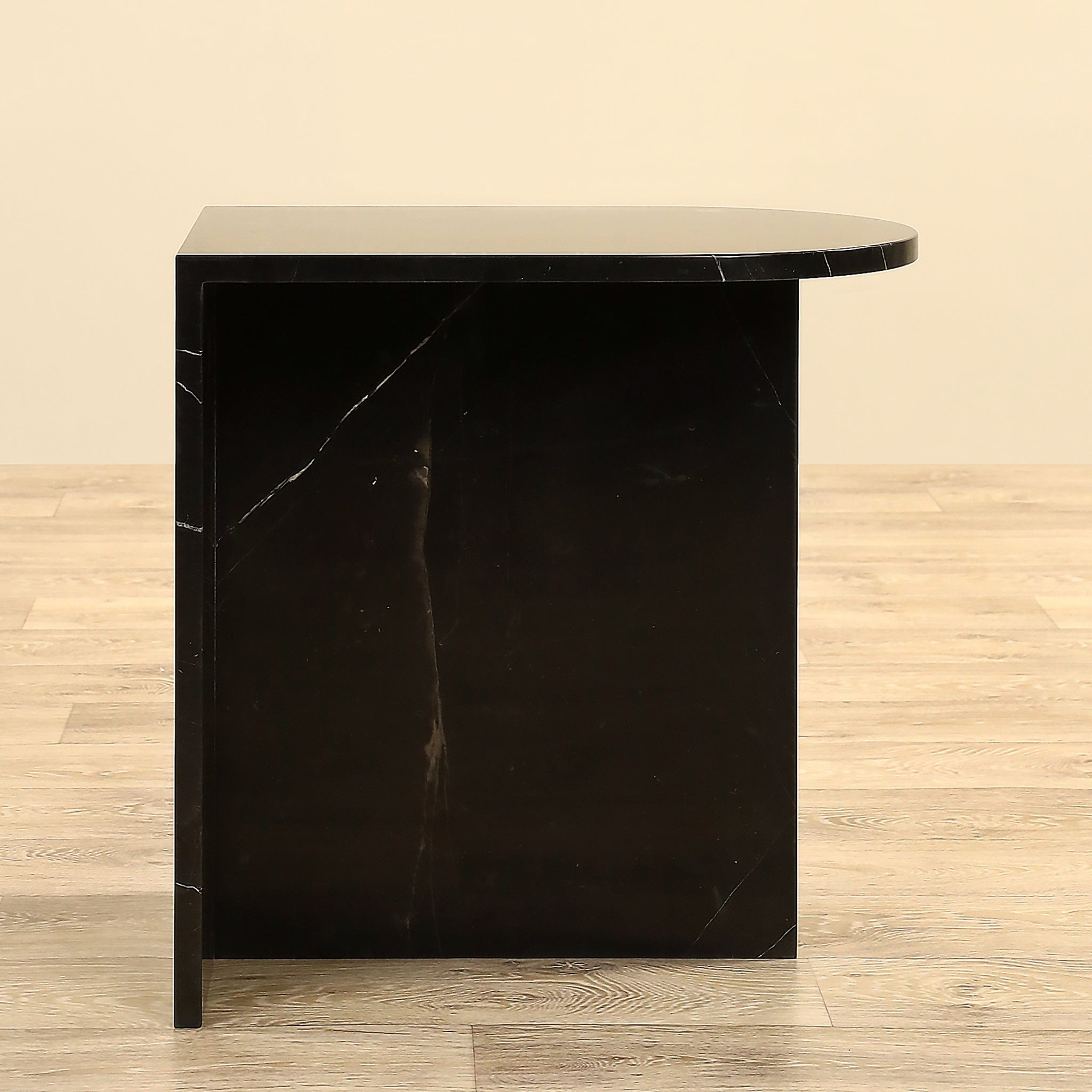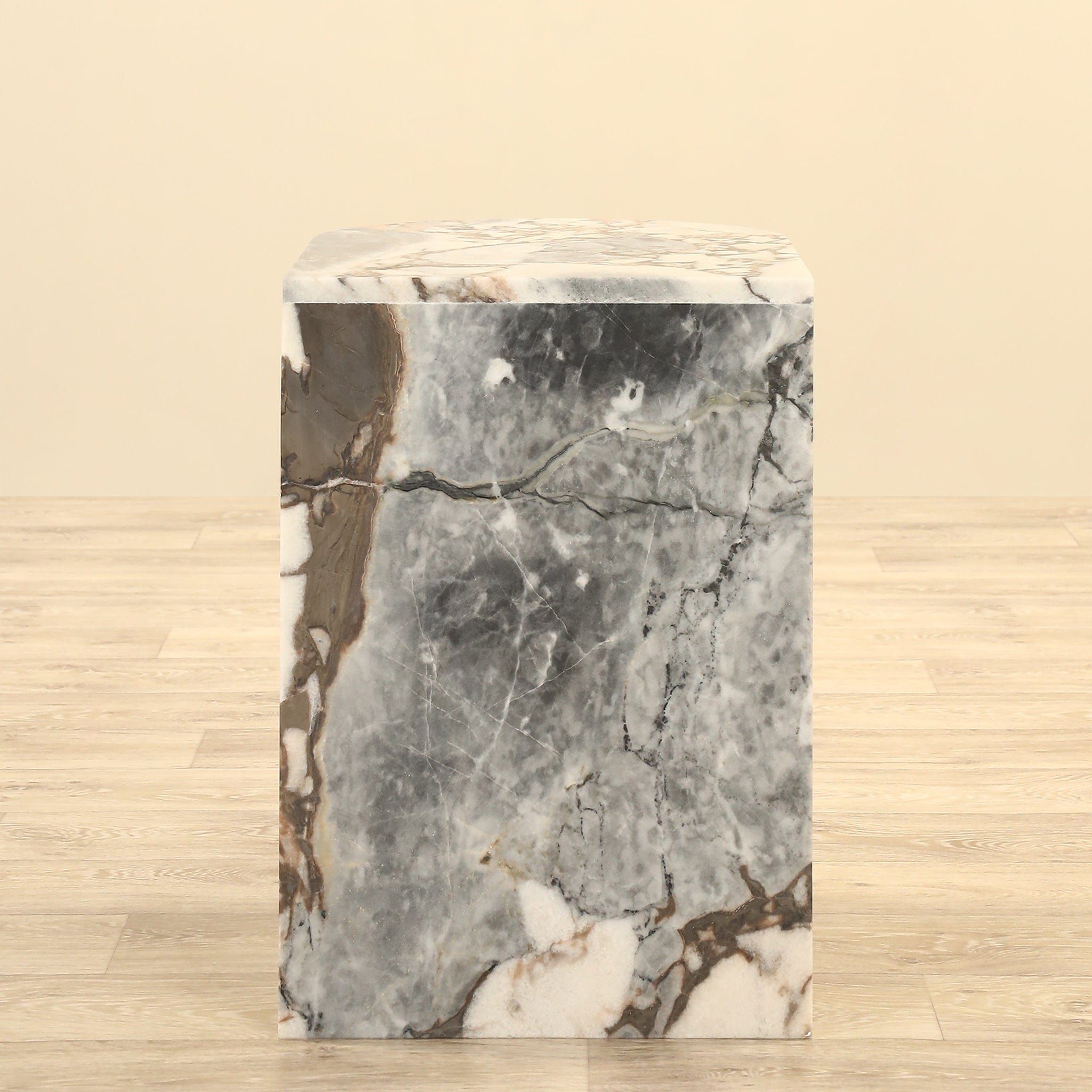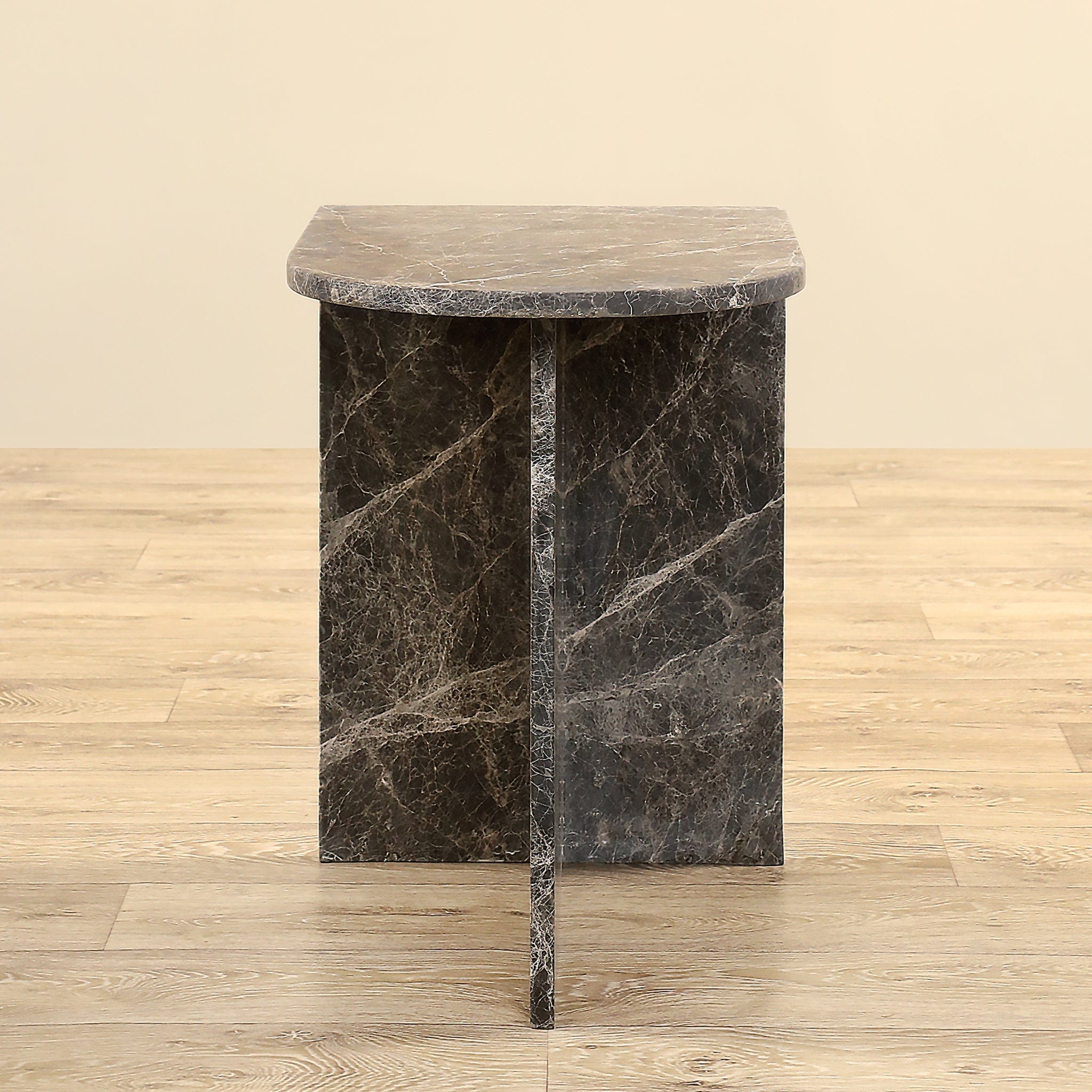 The sculptural style of the Morano Side Table will lend effortless calm to a living space. Created in beautifully veined marble this side table has a wonderful geometric shape to lend depth and interest to a space as well as sophisticated style.