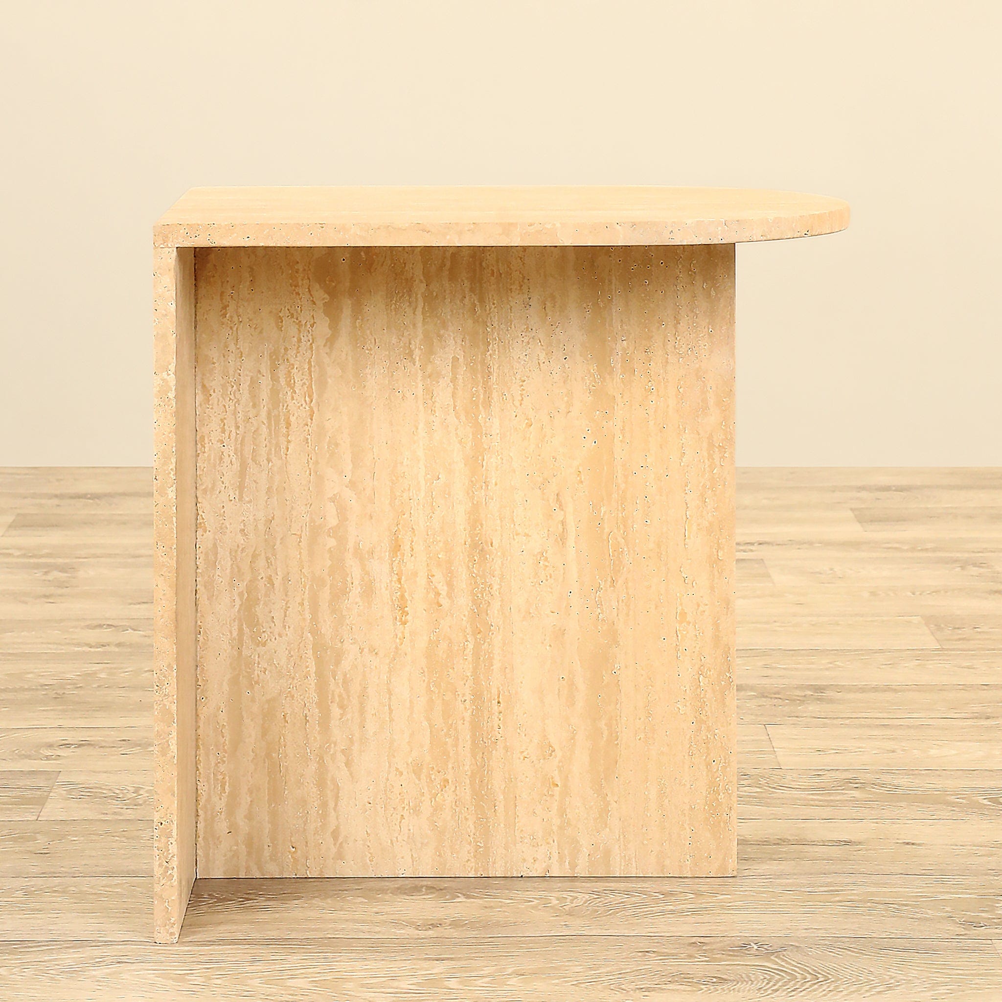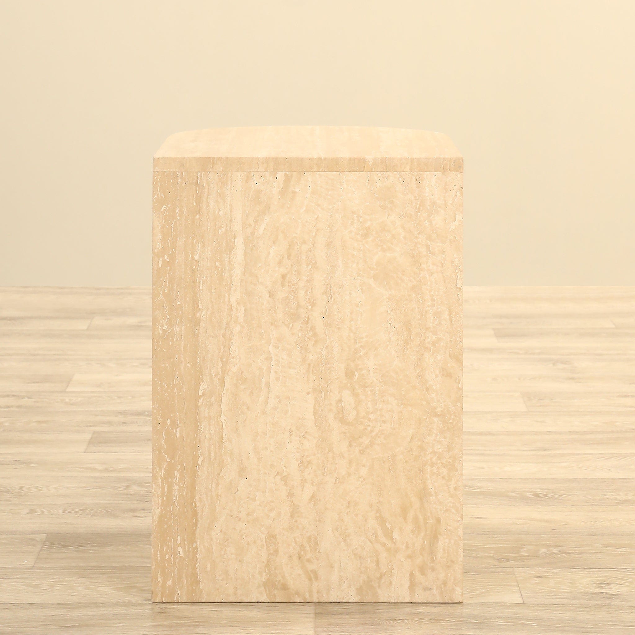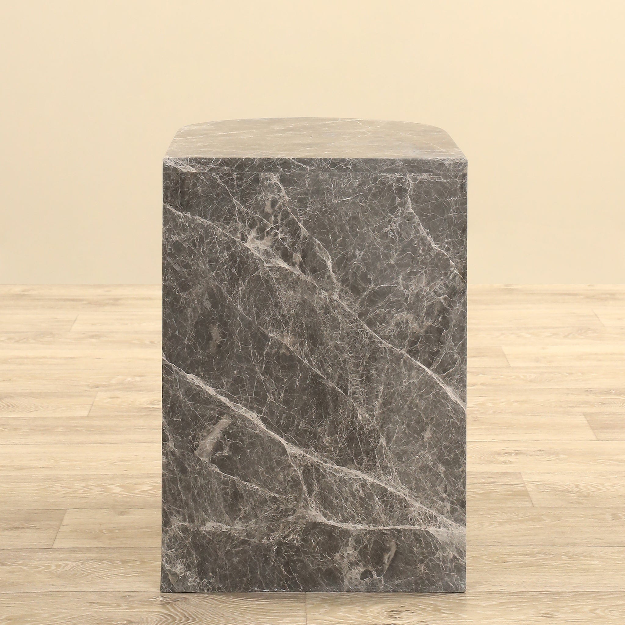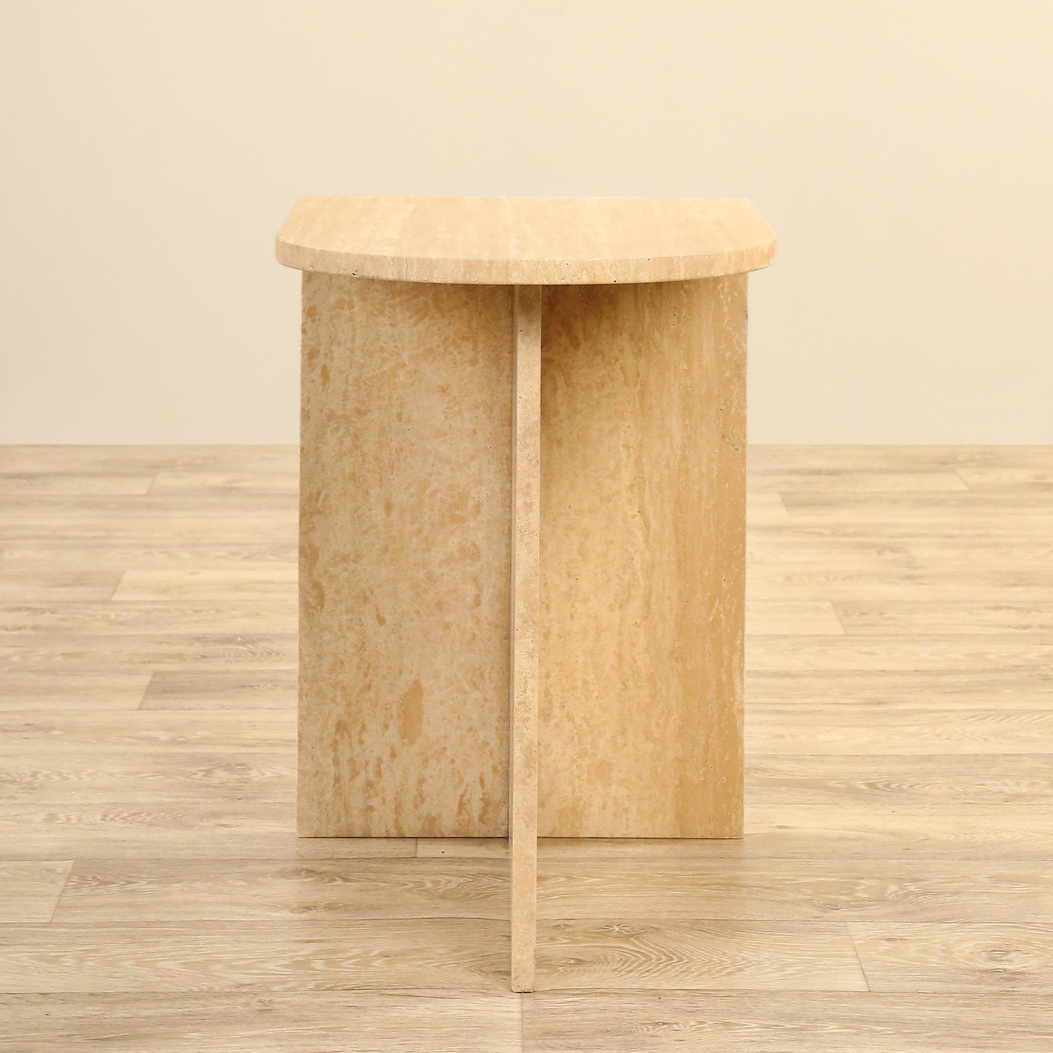 The sculptural style of the Morano Side Table will lend effortless calm to a living space. Created in beautifully veined marble this side table has a wonderful geometric shape to lend depth and interest to a space as well as sophisticated style.