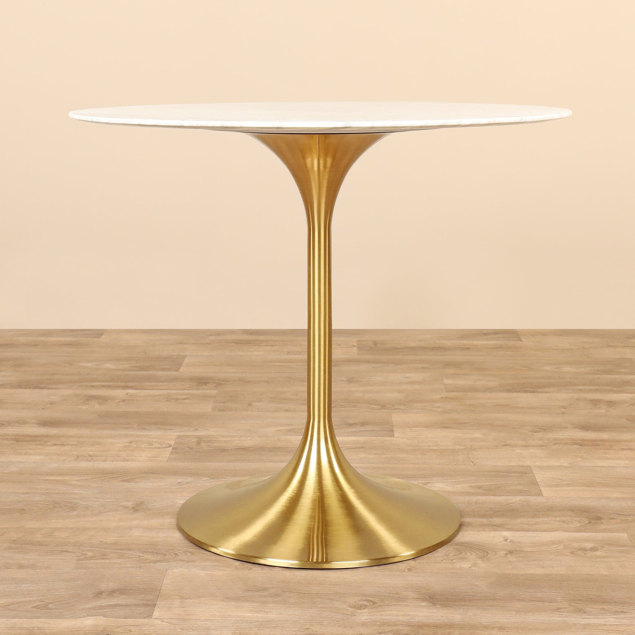 A retro silhouette, sleek top, and gleaming stainless steel base make the Obert dining table a sophisticated choice for a dining area. Ideal for grounding a space with a modern style this stunning dining table boasts a gorgeous marble top.