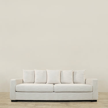 Upholstered in versatile fabric, the Oslo Sofa emanates a sense of timeless sophistication, effortlessly elevating any living space. The design features two bottom cushions that invite you to sink into luxurious relaxation, creating a welcoming and cozy seating experience. The loose five-cushion back adds an element of versatility, allowing you to arrange and customize the seating for your utmost comfort. Upholstered in linen this sofa is an elegant choice for any seating arrangement.