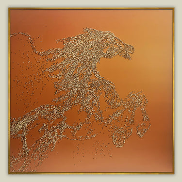 Whether showcased in a contemporary or minimalist setting, this stunning artwork, characterized by a lovely composition of leather dispensing and a gleaming finish, will serve as a dynamic focal point. It evokes contemplation and appreciation for its artistic sophistication, making it an ideal choice for a living space, dining room, or entryway.