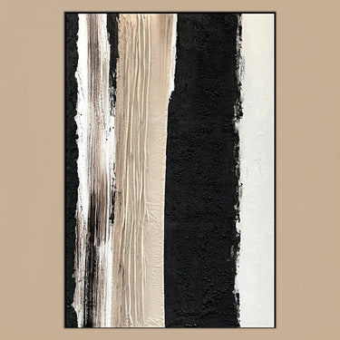 Update your style with a canvas that is a play of contrasts, skillfully balanced to evoke a sense of depth. The inclusion of texture emerges, adding a tactile dimension that elevates the entire composition. This textured element introduces a dynamic interplay of light and shadow, enhancing the overall visual impact of the artwork. This painting is a harmonious blend of color and texture, resulting in a contemporary piece that complements any modern interior.