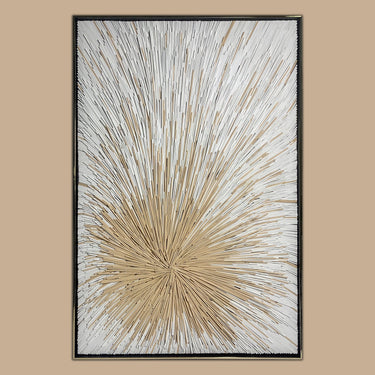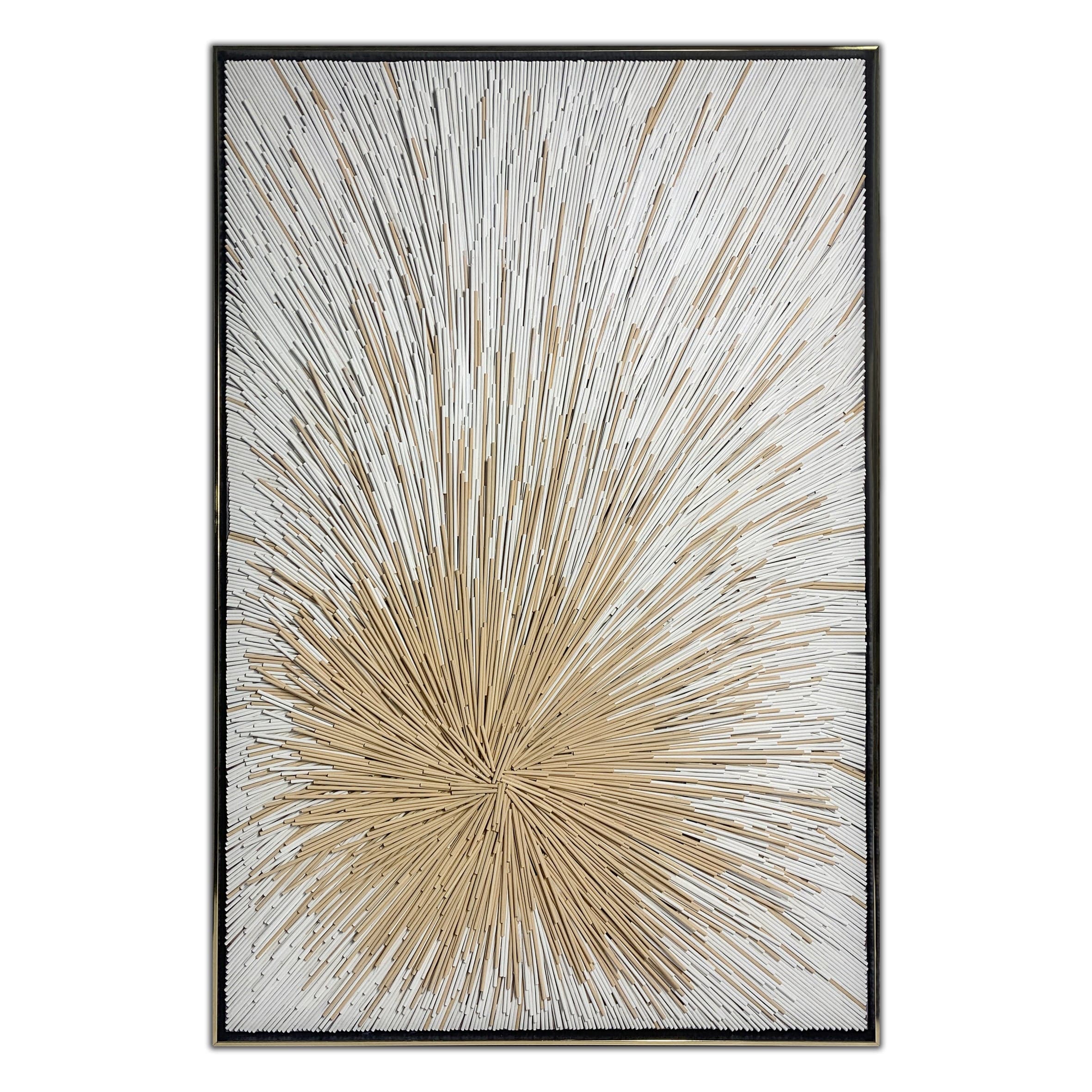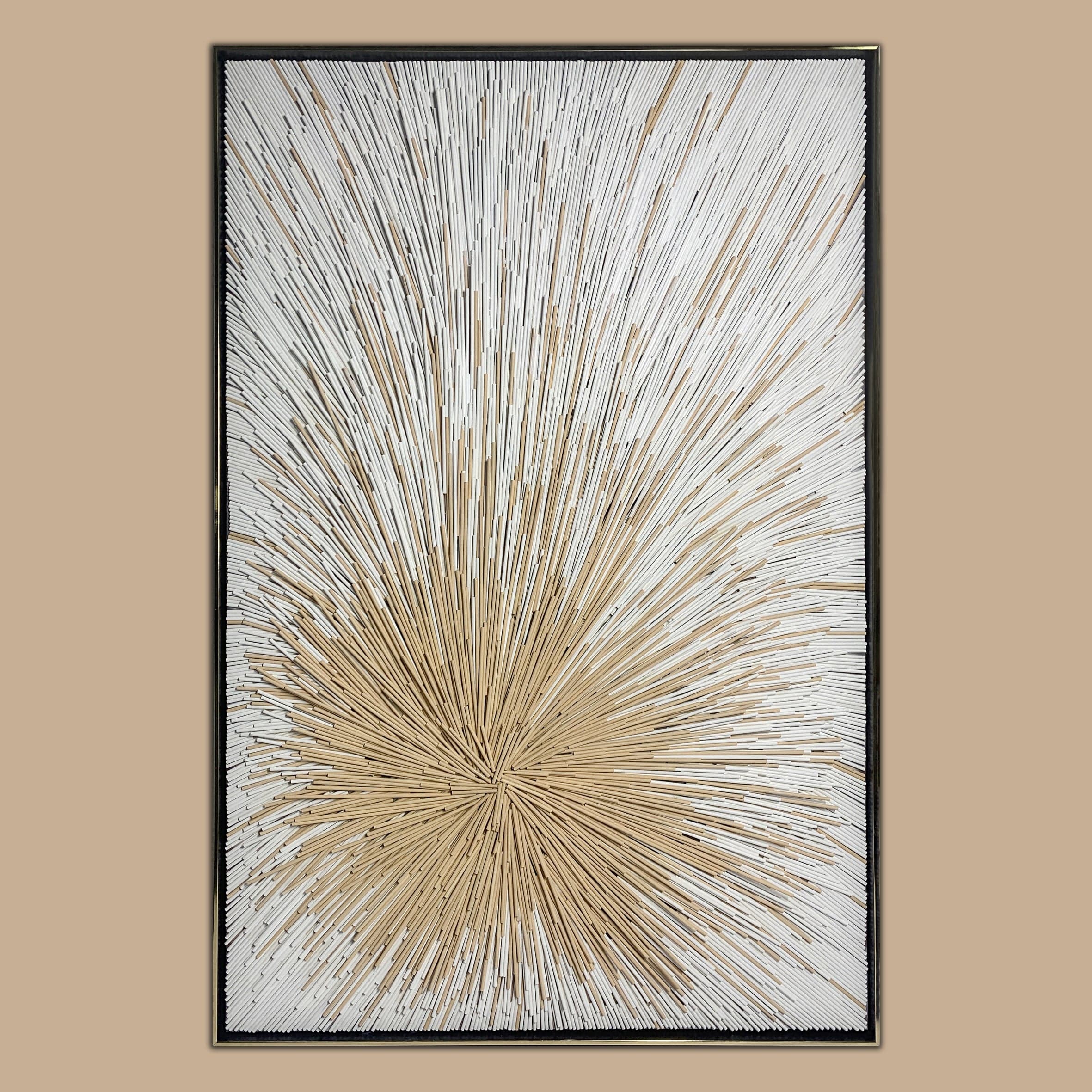 Elevate your space with the appeal of real paper tube modeling in this distinctive work of art. With its clean lines, starburst design, and neutral palette, this painting is designed to enhance and elevate any decorating style, adding a touch of sophistication to your aesthetic.