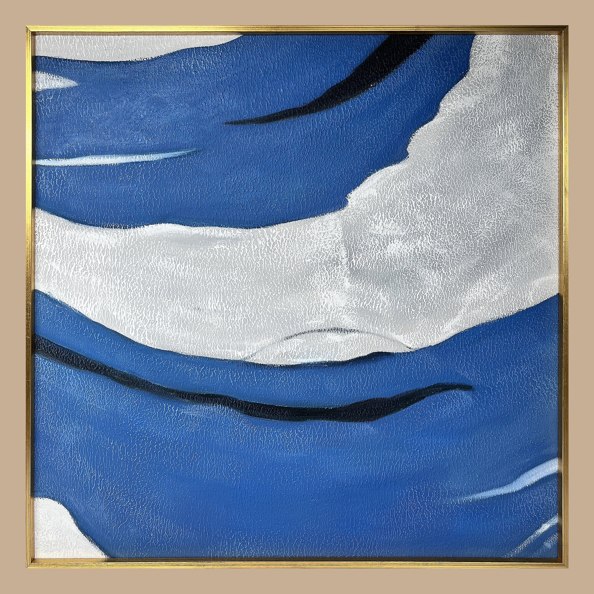 This stunning painting is a reflection of modern methods, a testament to the power of movement, and an invitation to appreciate the beauty found in the interplay of contrasting tones and sandstone texture. This artwork is perfect for those seeking a contemporary piece to effortlessly elevate their space while exuding a timeless sense of sophistication.