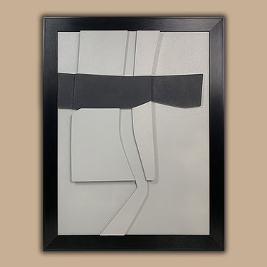 Transform a bare wall with this contemporary painting. Its graphic design utilizes wood carving and painting to complement various decor styles effortlessly. Framed in black for impact, this sophisticated artwork offers a simple yet distinctive way to rejuvenate a space.