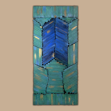 Unframed for maximum impact this artwork showcases a fusion of wood cutting, painting, gold foil and resin. Tactile and visually compelling this artwork is a pairing of experimentation and creativity making it perfect for a place of honor in any room to create a bold focal point.