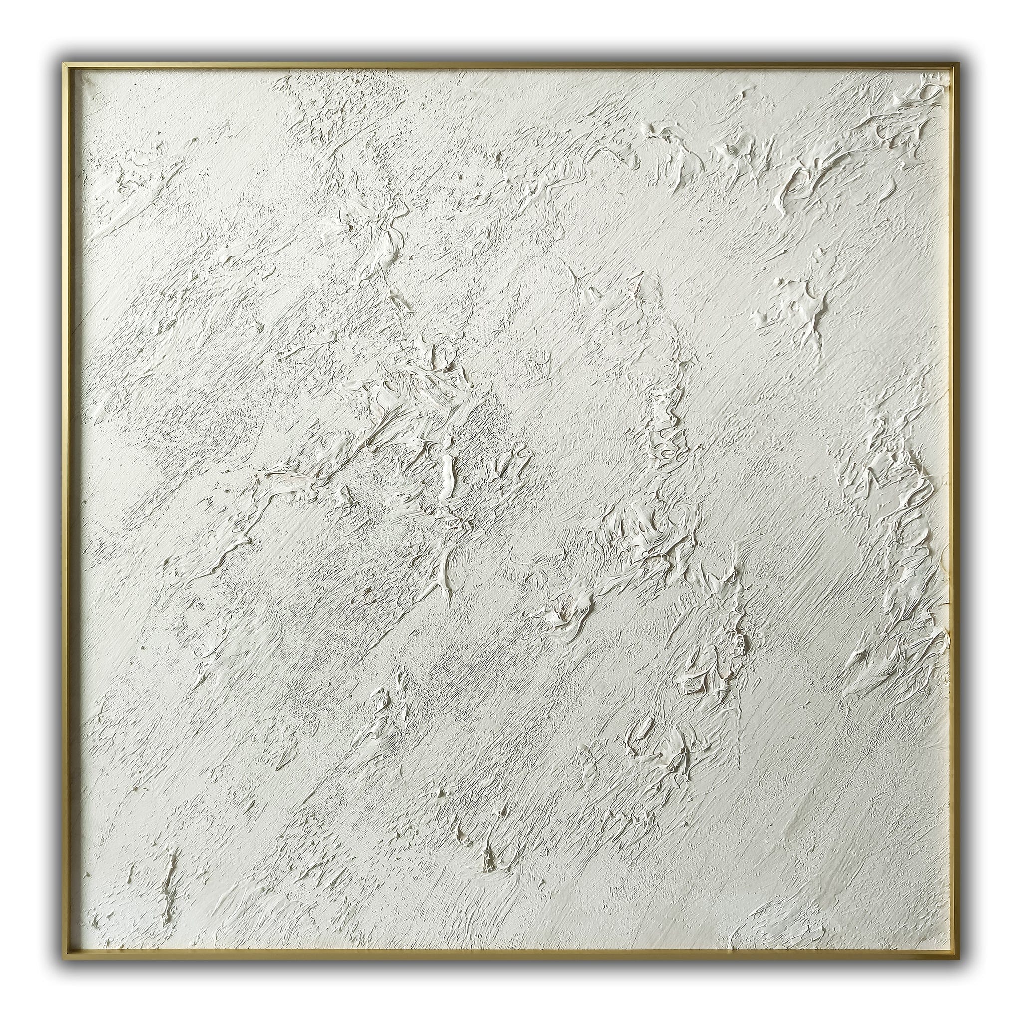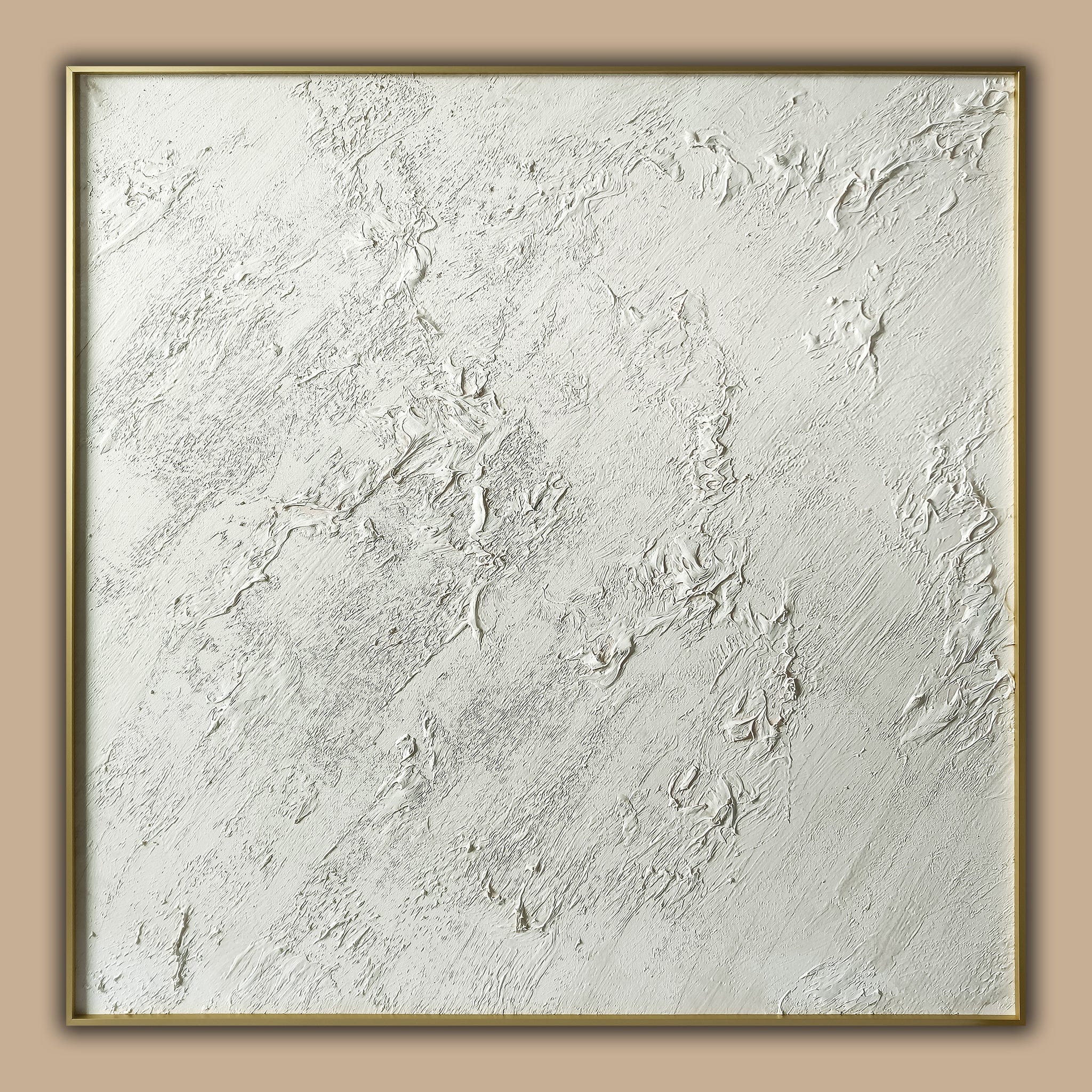 Painted with oil, this abstract artwork is encased in a sleek champagne frame, providing a sophisticated contrast to the neutral tones within the composition. This beautifully crafted handmade oil painting prominently showcases the contemporary flair and skillful use of placement, making it an ideal addition to various decorating styles.