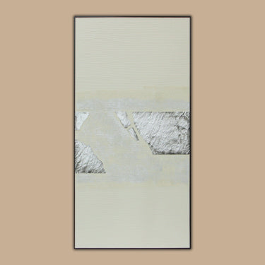 Painted with oil, this abstract artwork is encased in a sleek black frame, providing a sophisticated contrast to the neutral tones within the composition. This beautifully crafted handmade oil painting prominently showcases the contemporary flair and skillful use of form and shape, making it an ideal addition to various decorating styles.