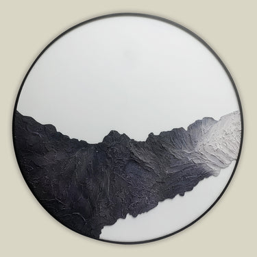 Crafted with meticulous attention to detail, this work of art boasts a rich sandstone texture, eliciting the rugged beauty of nature's landscapes. Encircled by a black frame, this piece exudes a sense of modern elegance, enhancing its impact and commanding attention in any space.