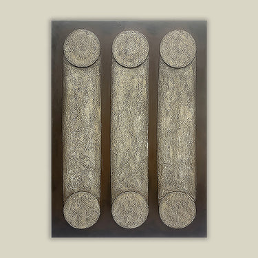 Using textured paint and encased in a sleek gold frame, this masterpiece commands attention as a must-have addition to any living room or entryway wall. With its striking contrast of tones and captivating shapes, this artwork is more than mere decor, it is a symbol of contemporary elegance and minimalist sophistication.