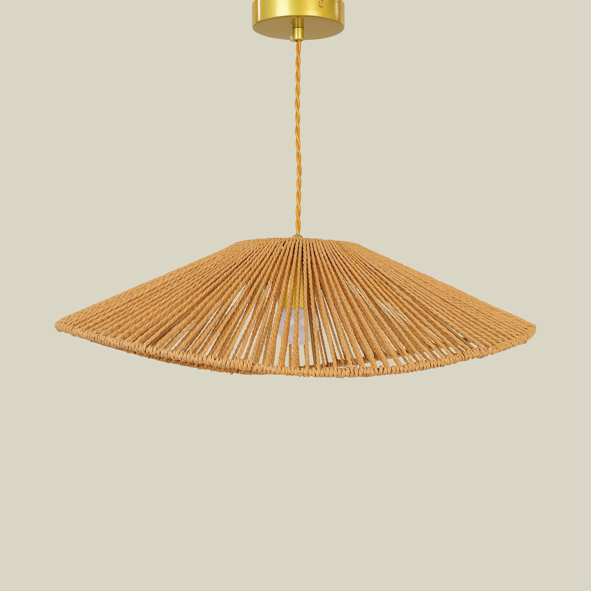 Meticulously crafted from natural rattan fibers, this ceiling fixture casts intricate shadow patterns while providing warm, ambient illumination.