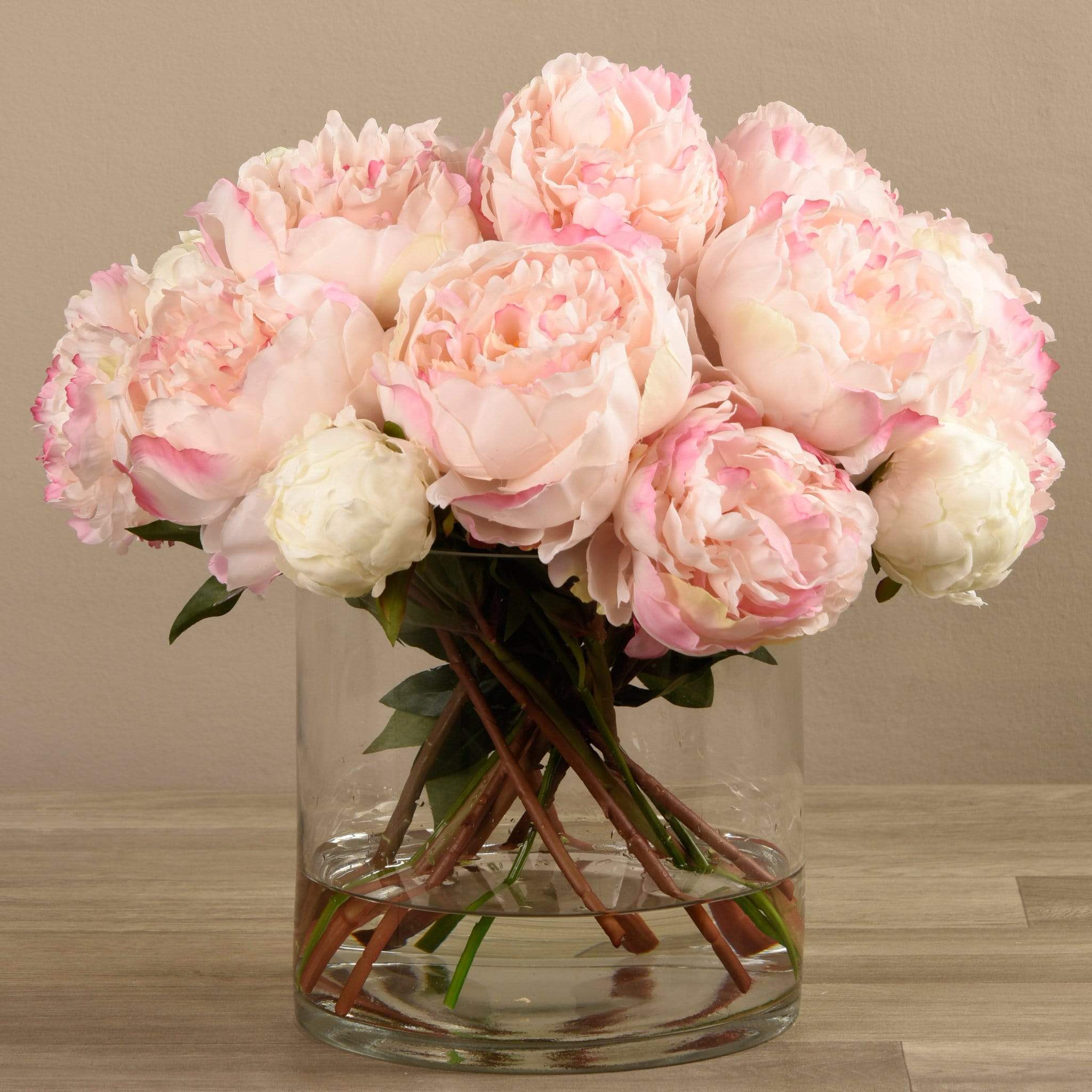 Artificial Peony Arrangement in Glass Vase