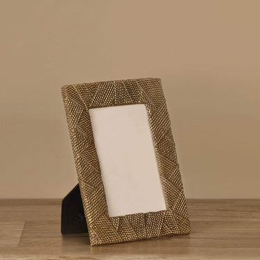 A picture tells a thousand words, and this stunning frame makes that message heard. This gold woven frame is a gorgeous way to display wedding photos, family photos, or a photo of a far-away loved one.