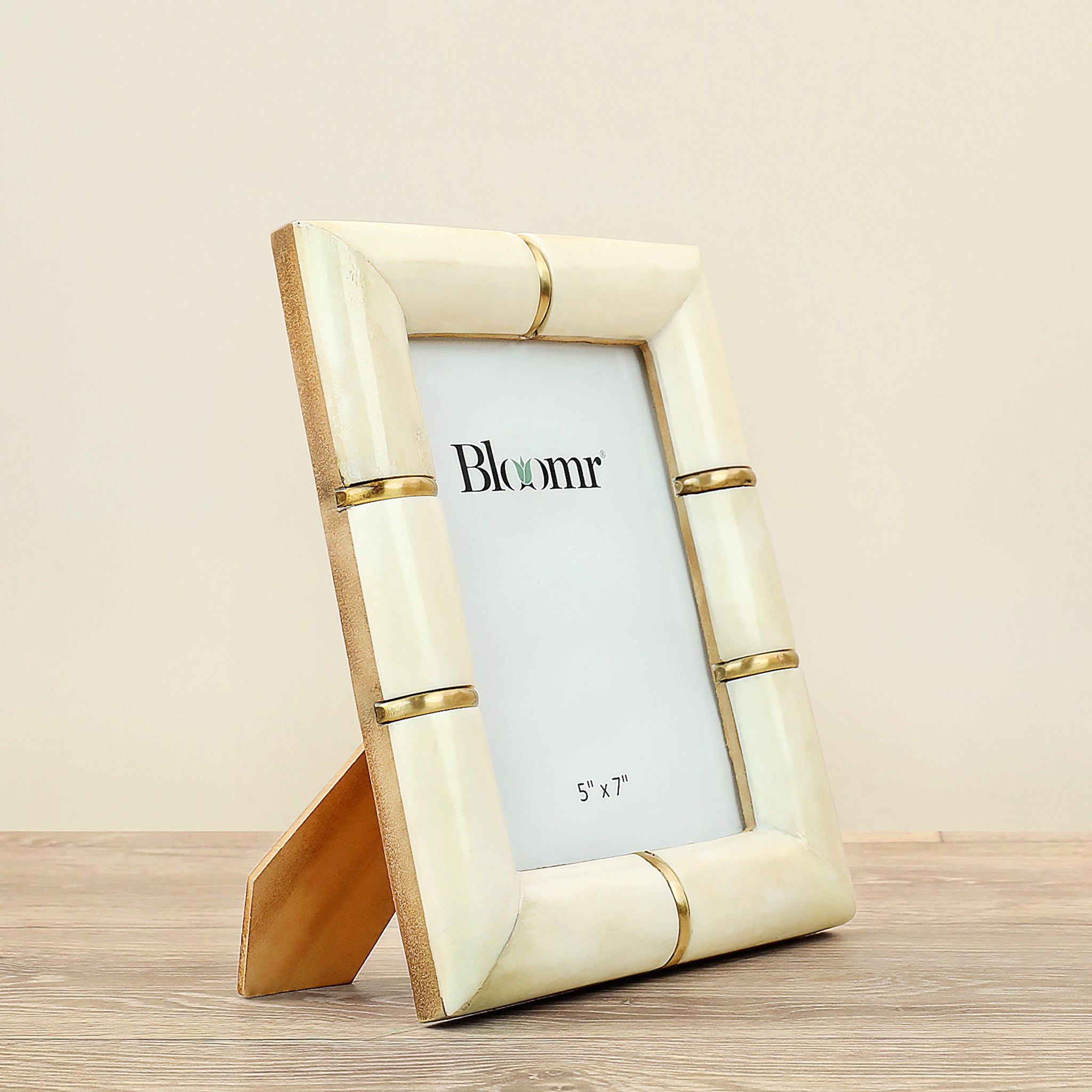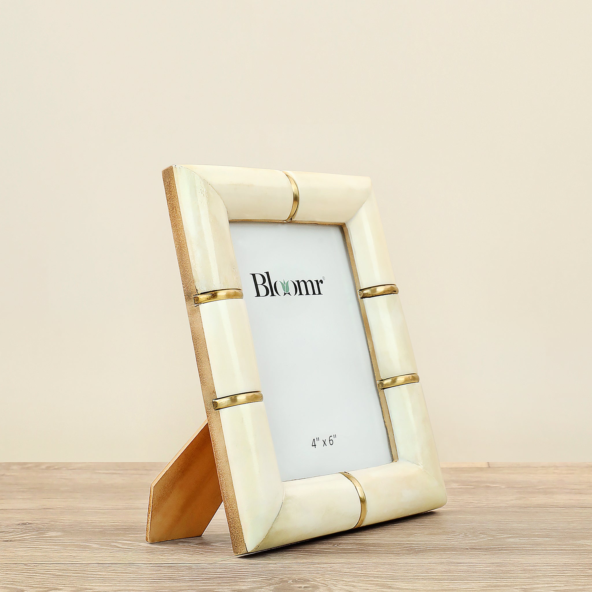 Elevate the presentation of your cherished photos with this versatile frame. Designed in bone white, it seamlessly complements any decorating style while providing a stunning backdrop for your photographs. Boasting a metal detail design, this photo frame ensures a perfect showcase for your favorite memories, adding an elegant touch to any space.
