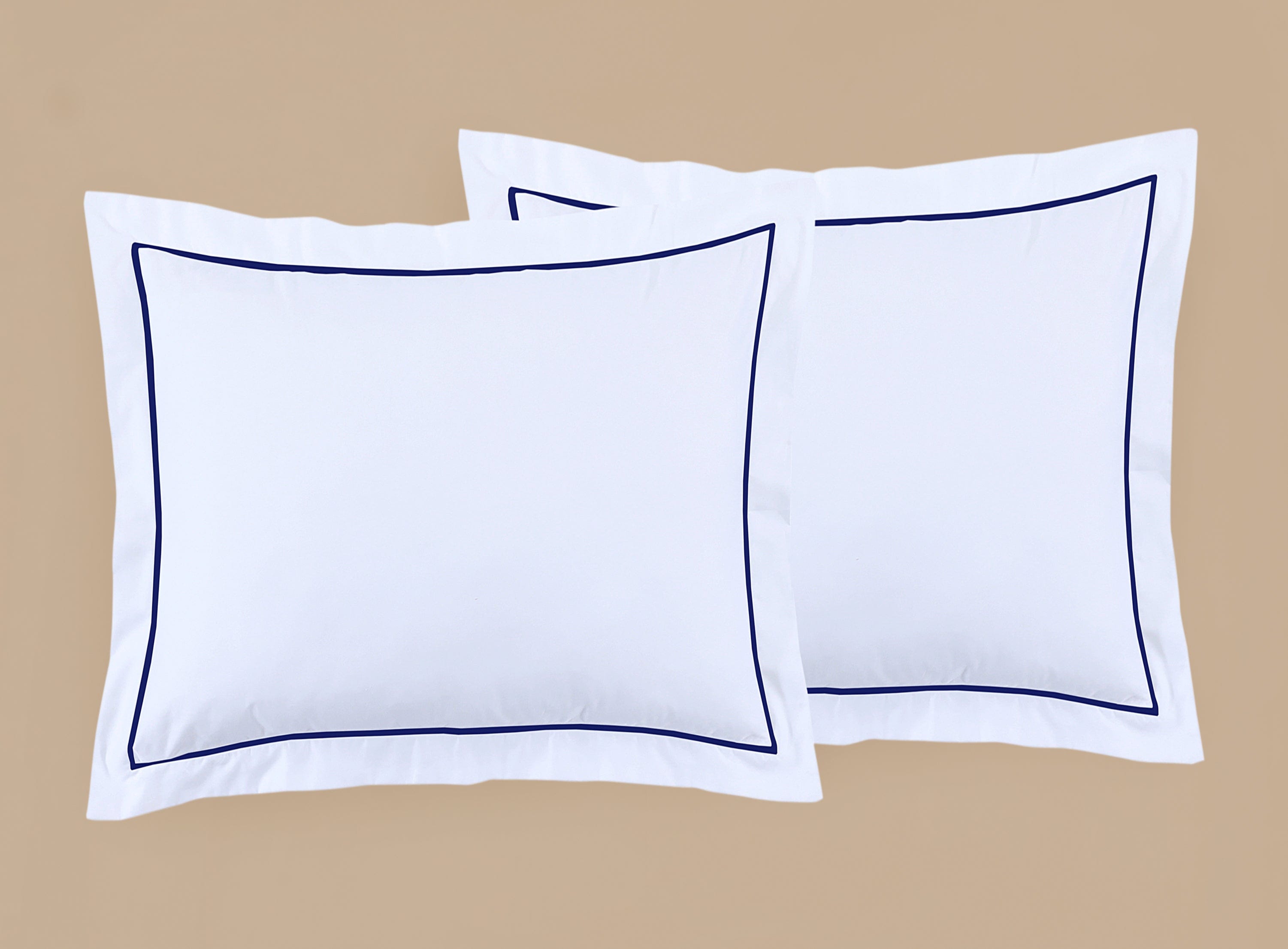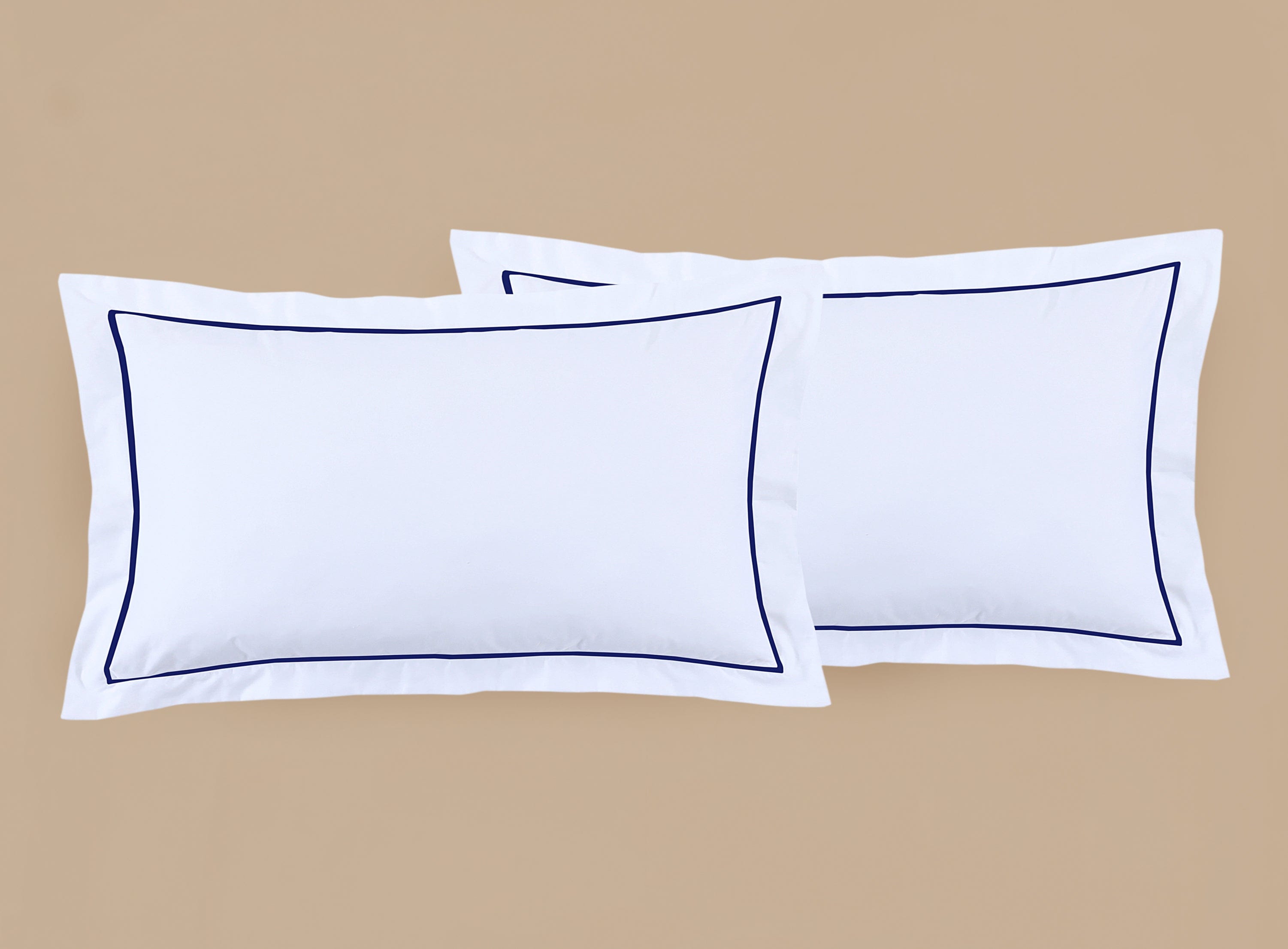 Indulge in luxury and comfort with our luxurious pillowcase set from The Premium Hotel Collection. Crafted from wonderfully soft 500-thread-count Egyptian cotton, these pillowcases offer a restful night's sleep. Detailed with navy embroidery on a pristine white backdrop, and featuring a wide flange detail, they offer sophistication and charm to elevate your bedroom decor.