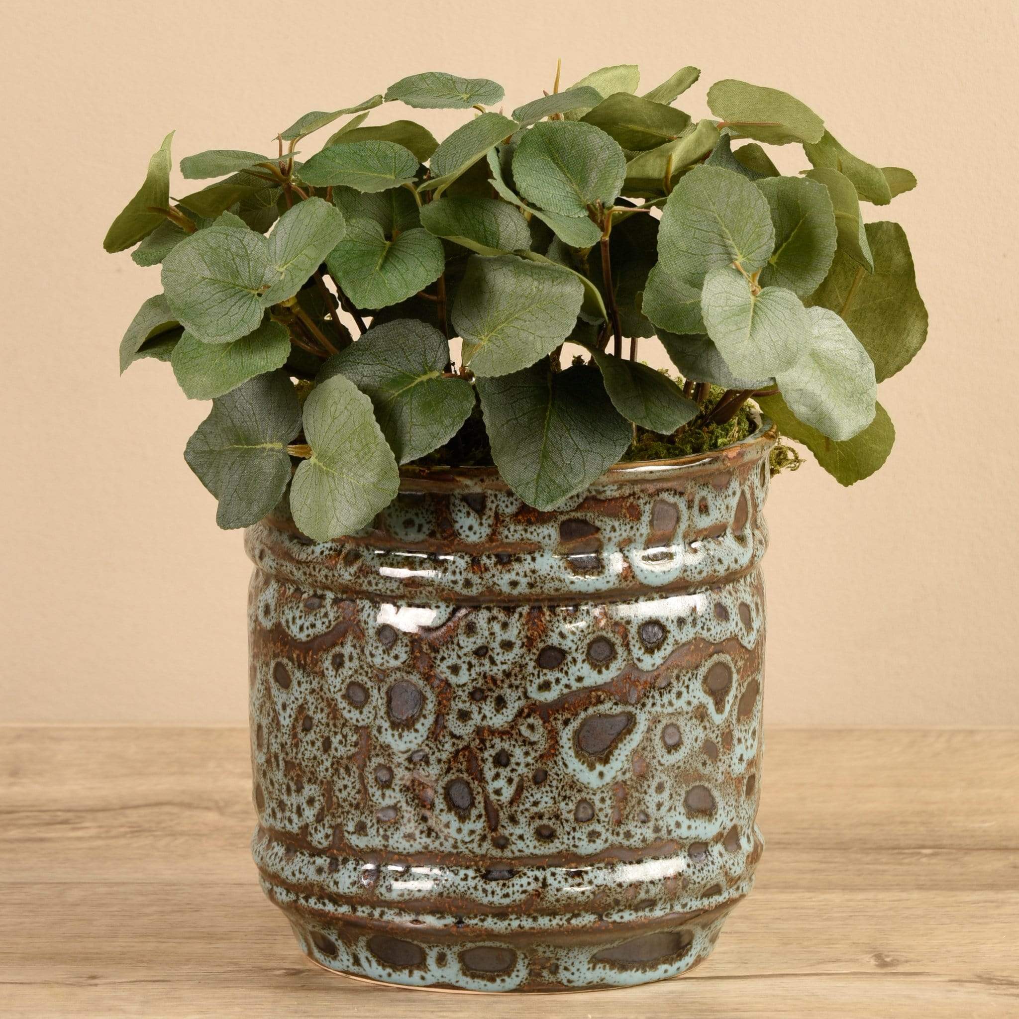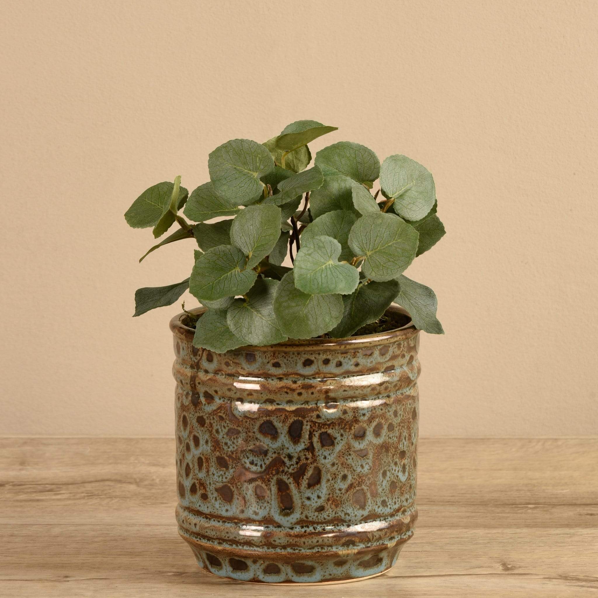 This artificial eucalyptus plant is sure to add life and tranquility to any living space. Its green leaves feel astonishingly real to the touch. Its speckled copper pot works with any decor.