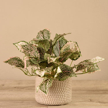 Fittonia, or Nerve Plant because it resembles the human nervous system, is a unique and beautiful plant recreated here for all of your faux floral needs. Maintenance-free, this elegant artificial Potted Fittonia looks just like the real thing to bring natural beauty into any area of your home or office.