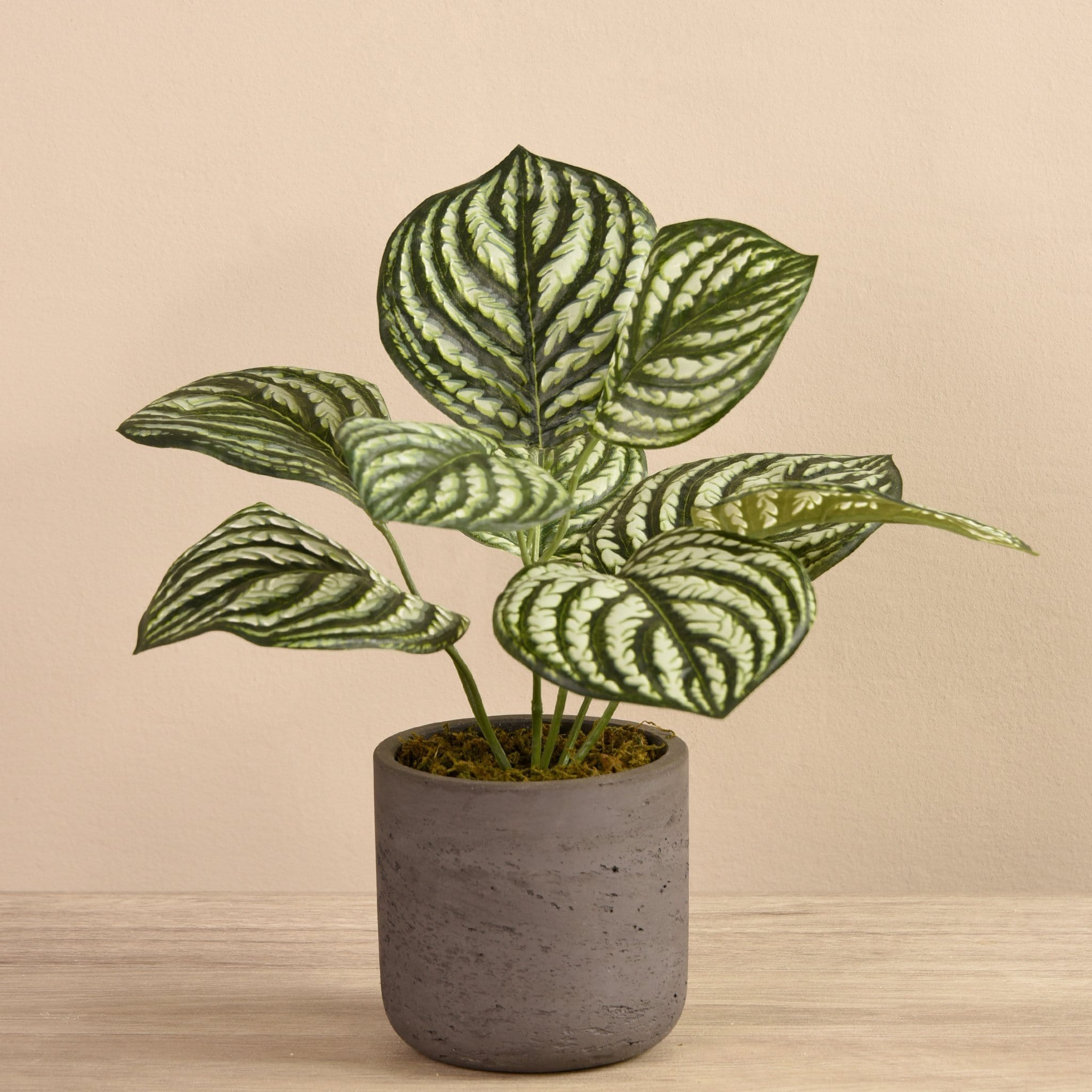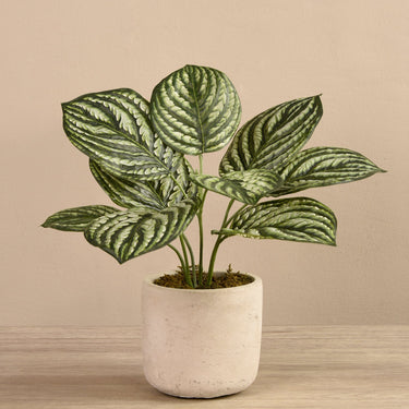 Our stunning Preperomia Plant in Cement Pot is a botanical creation that effortlessly fills your space with natural appeal. Admire the realism of its variegated leaves, carefully crafted to imitate the beauty of the genuine plant. Seated within a contemporary cement pot this lifelike plant adds a touch of modern elegance to any setting. Perfect for enhancing desks, shelves, or tabletops, this maintenance-free beauty brings the tranquility of nature indoors without any hassle.