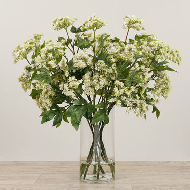 Artificial Queen Anne's Lace Spray Arrangement in Glass Vase