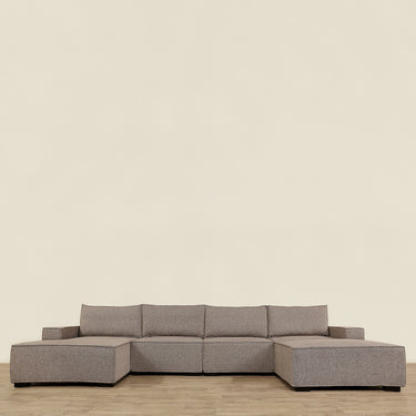 Cloudlike cushioning is the perfect complement to the squared-off frame of the River Sofa. Beautifully upholstered in linen, this sofa has loose back cushions and a streamlined look for contemporary appeal.