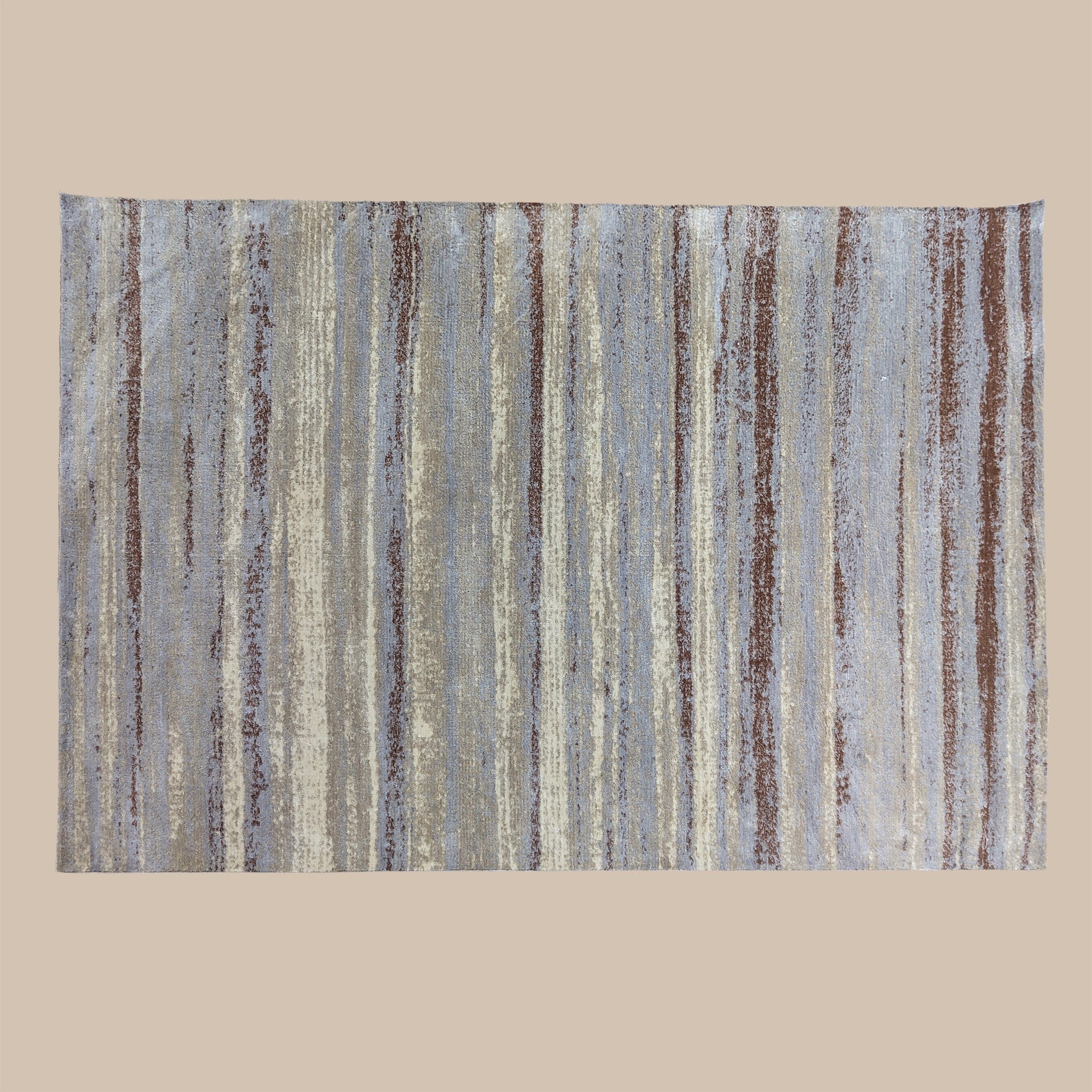Treat your floors to a stunning area rug designed in blues and neutrals and a modern design. Crafted with careful attention to detail, this rug has a low pile and is woven from high-quality polyester fibers, ensuring both durability and luxurious softness. Ideal for adding a touch of comfort to any room in your home, this rug provides a welcoming and cozy feel underfoot for the bedroom, dining room, or living area.