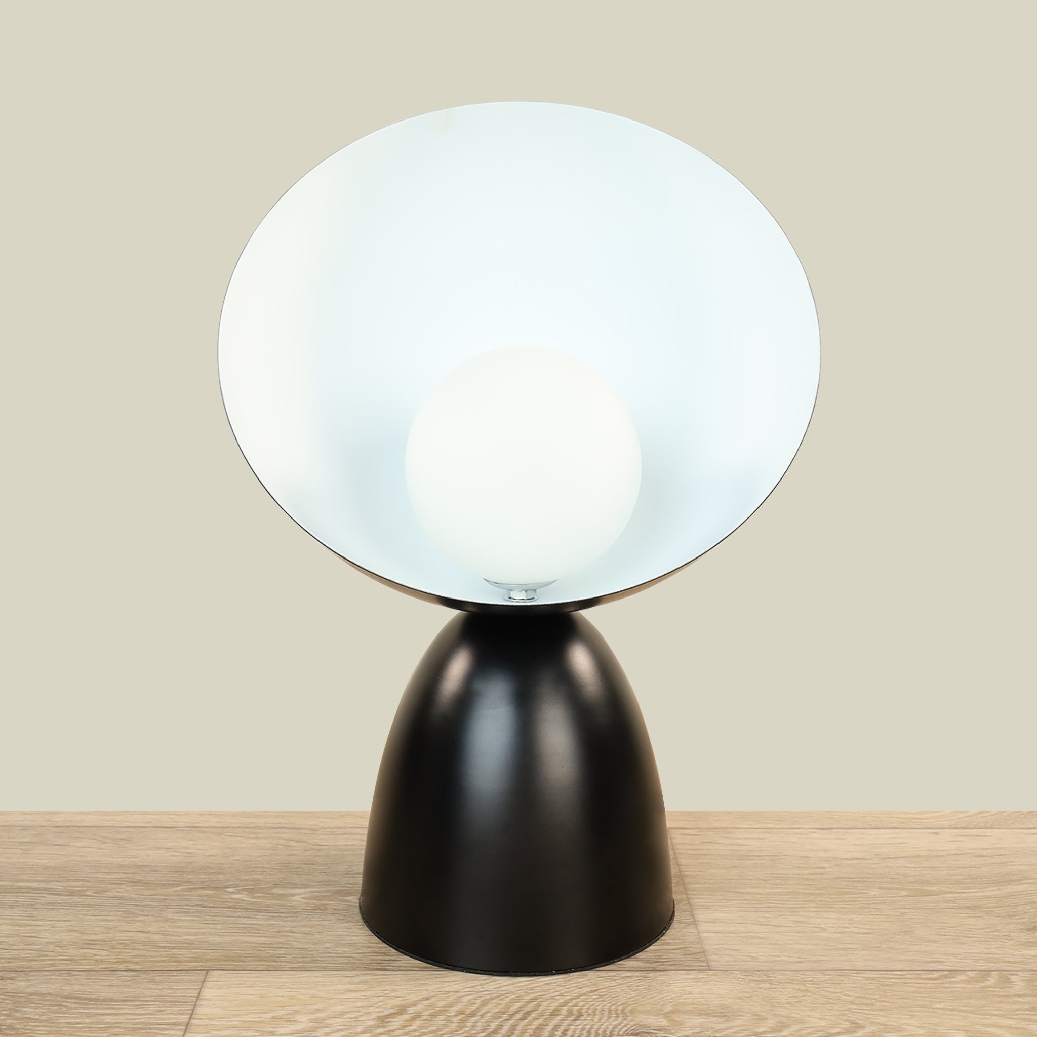 This elegant table lamp marries form and function with its sleek metal construction and sophisticated black finish.