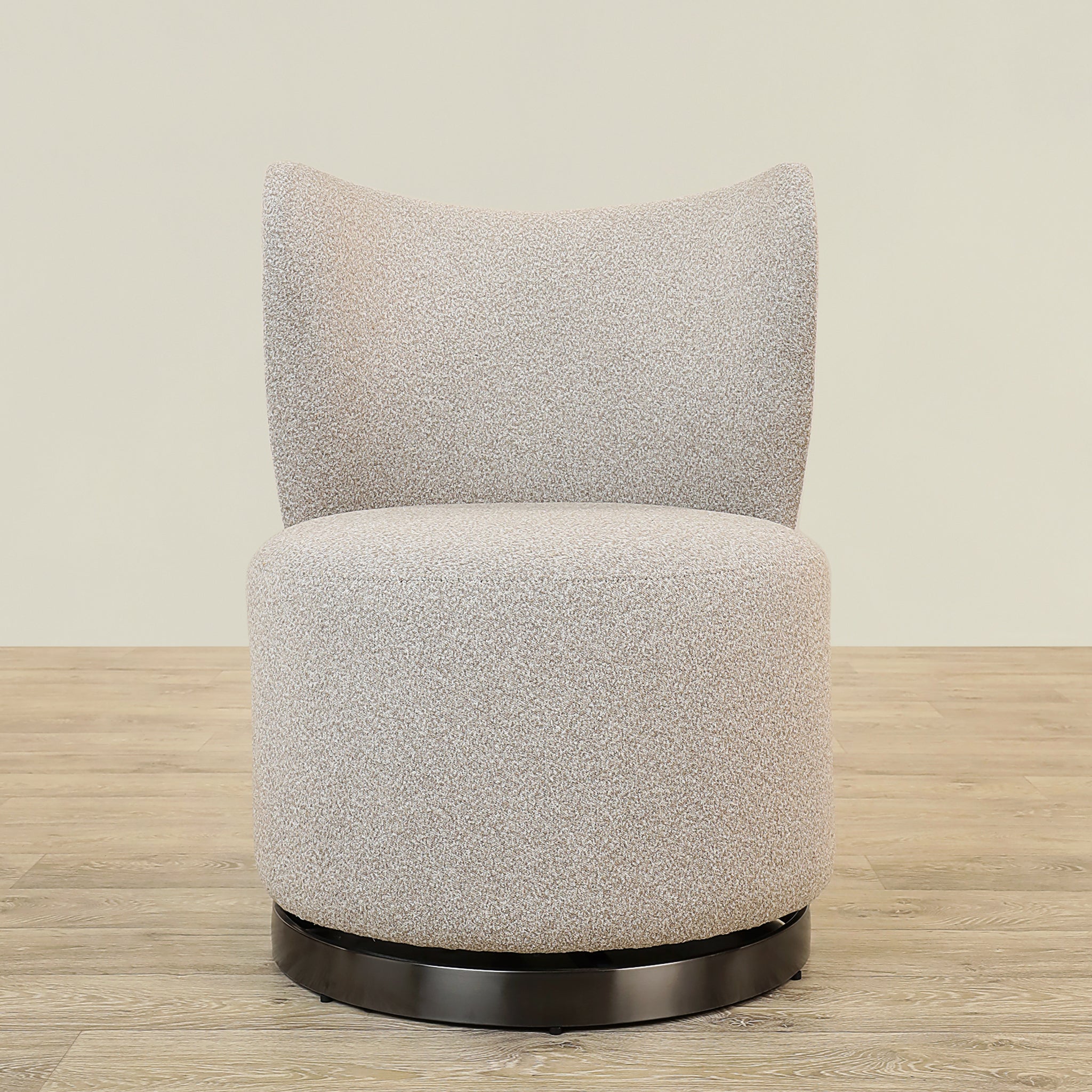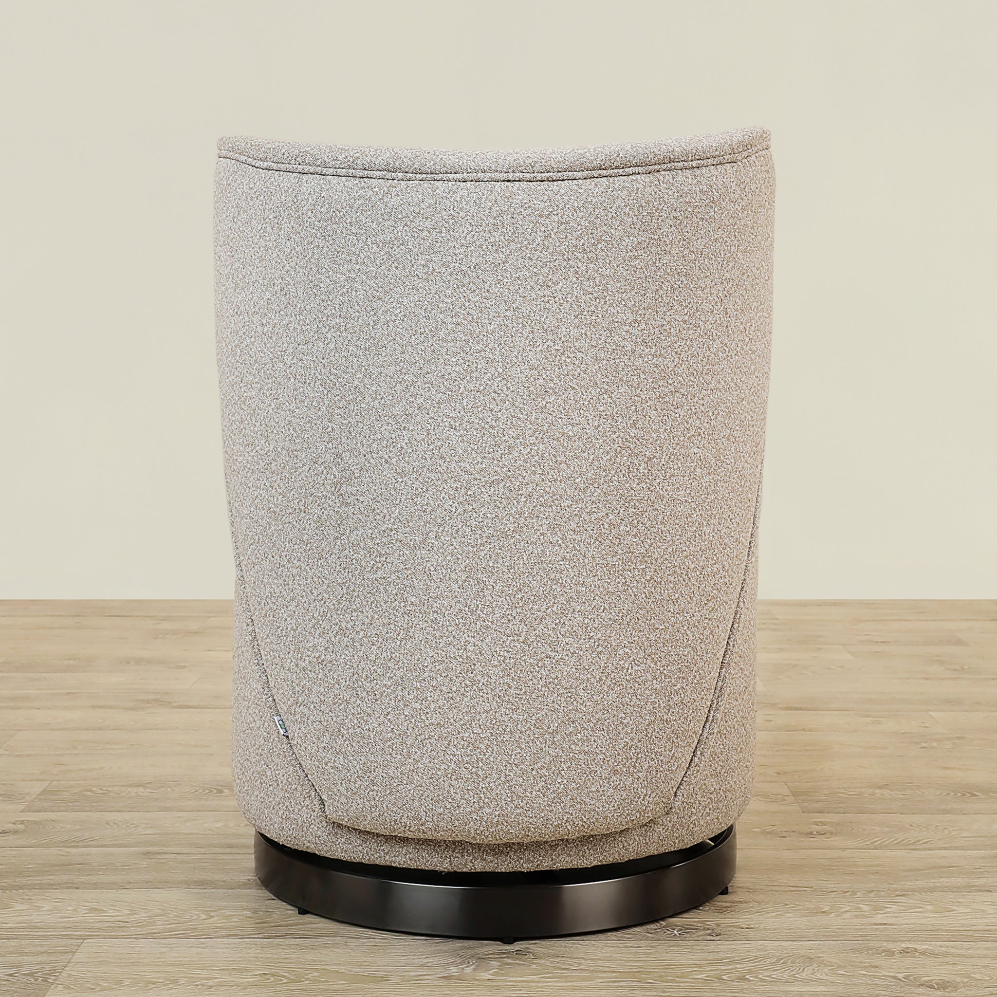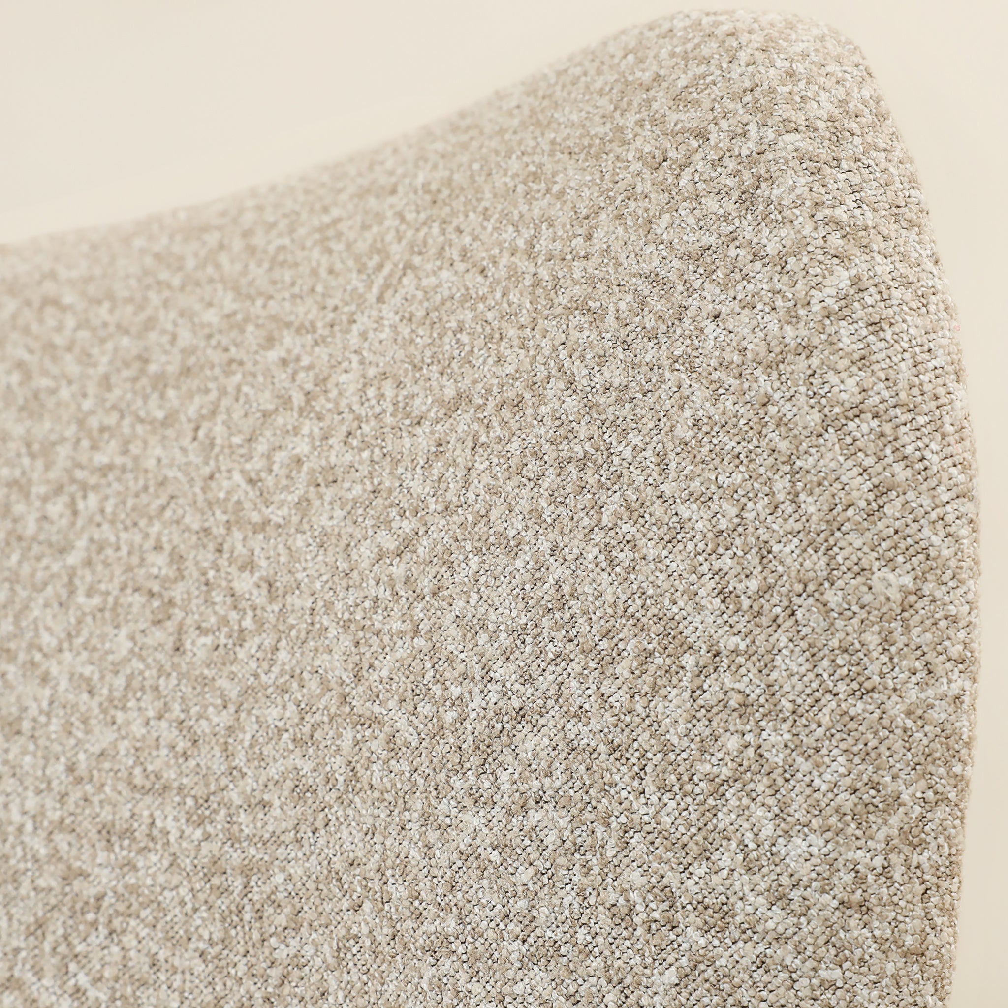Meticulously crafted with sumptuous bouclé fabric and supported by a refined metal base, this sophisticated seating solution offers both visual elegance and practical functionality.