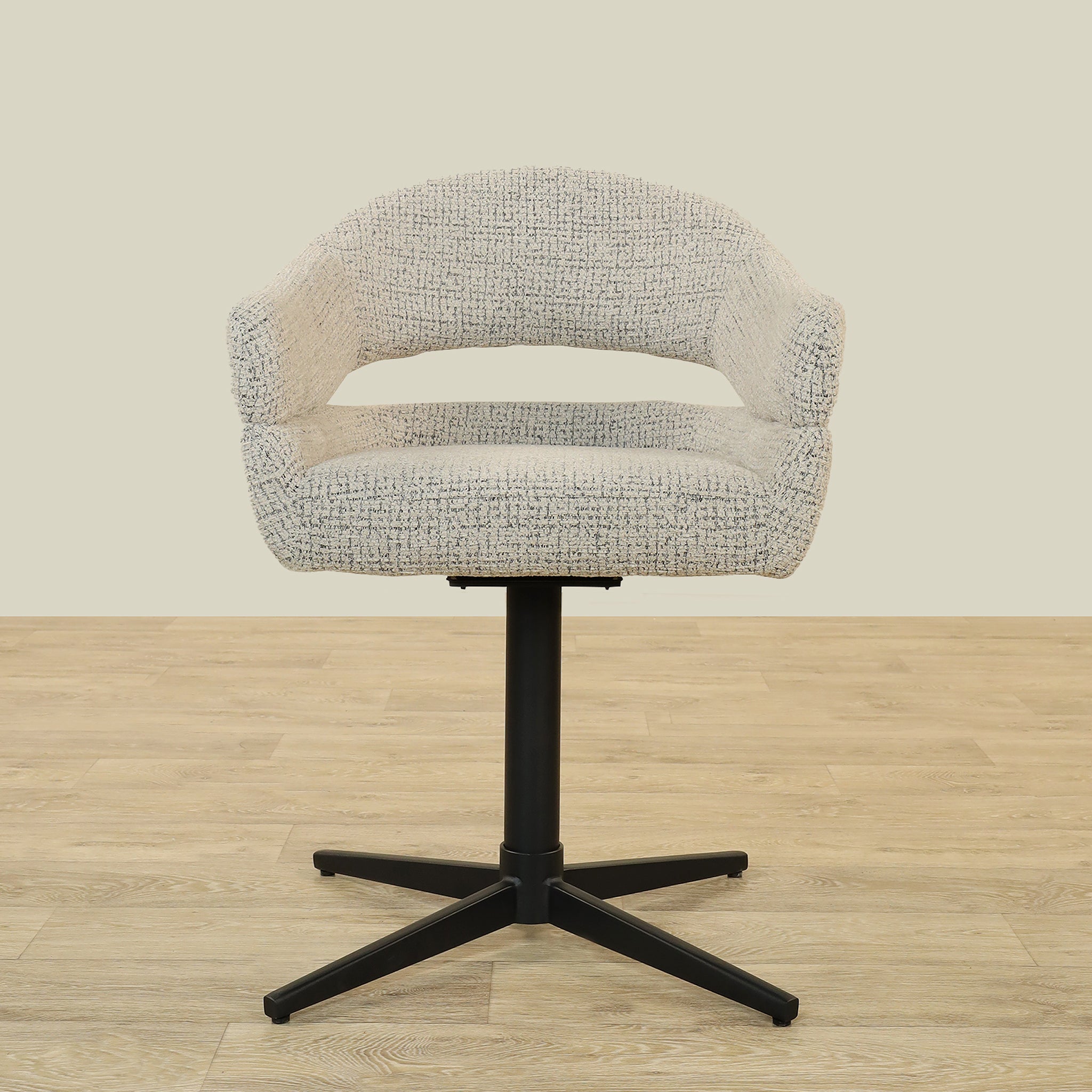 Its refined design enhances any dining space, providing comfortable seating with a modern, sophisticated touch.