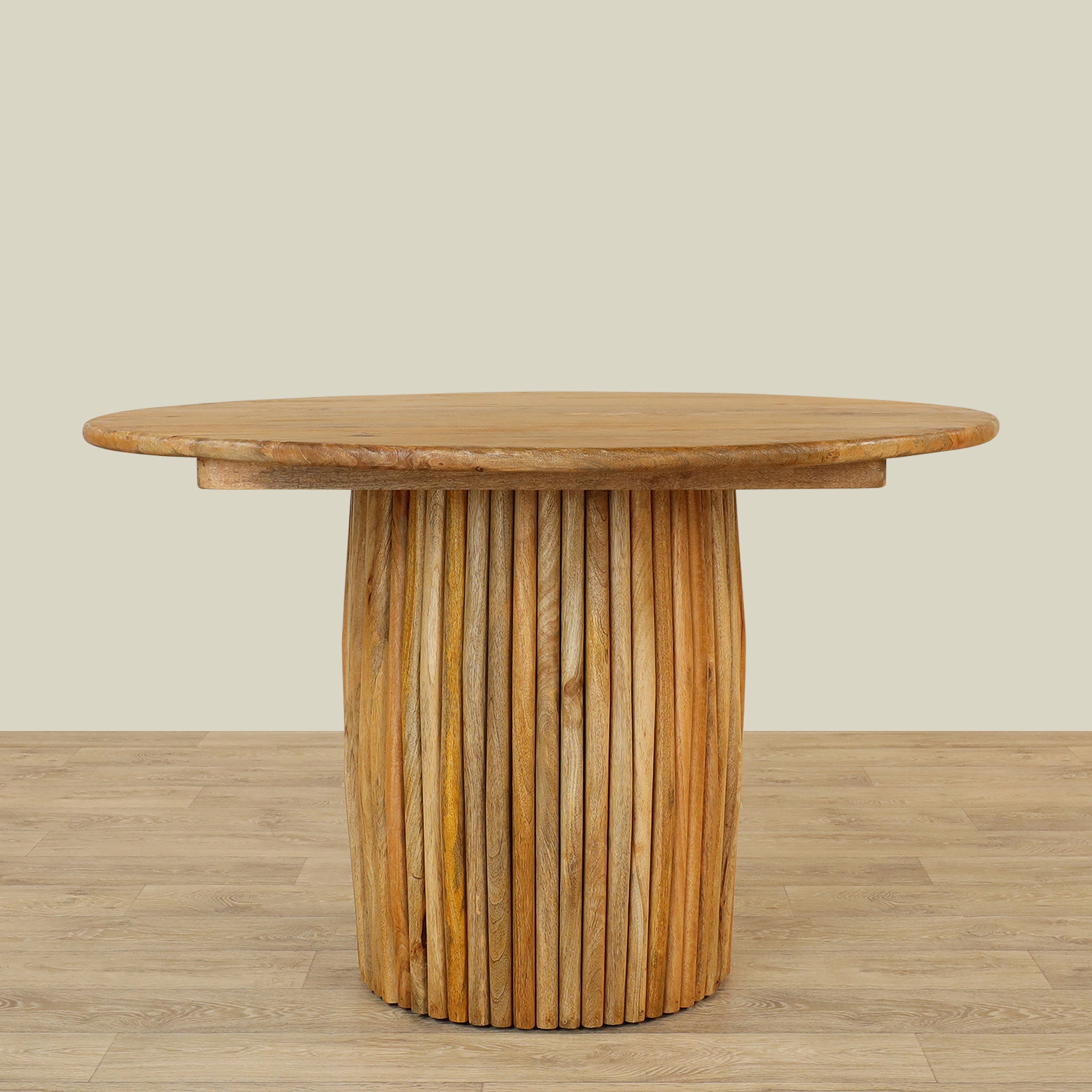 Its natural wood finish adds warmth and elegance, creating an inviting atmosphere for memorable meals and gatherings.