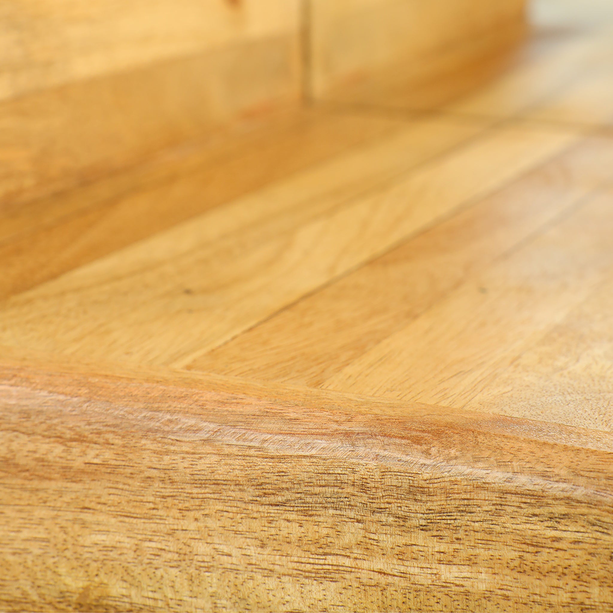 Its intricate parquetry design adds texture and elegance, while the high-quality glass provides a clear, reflective surface.