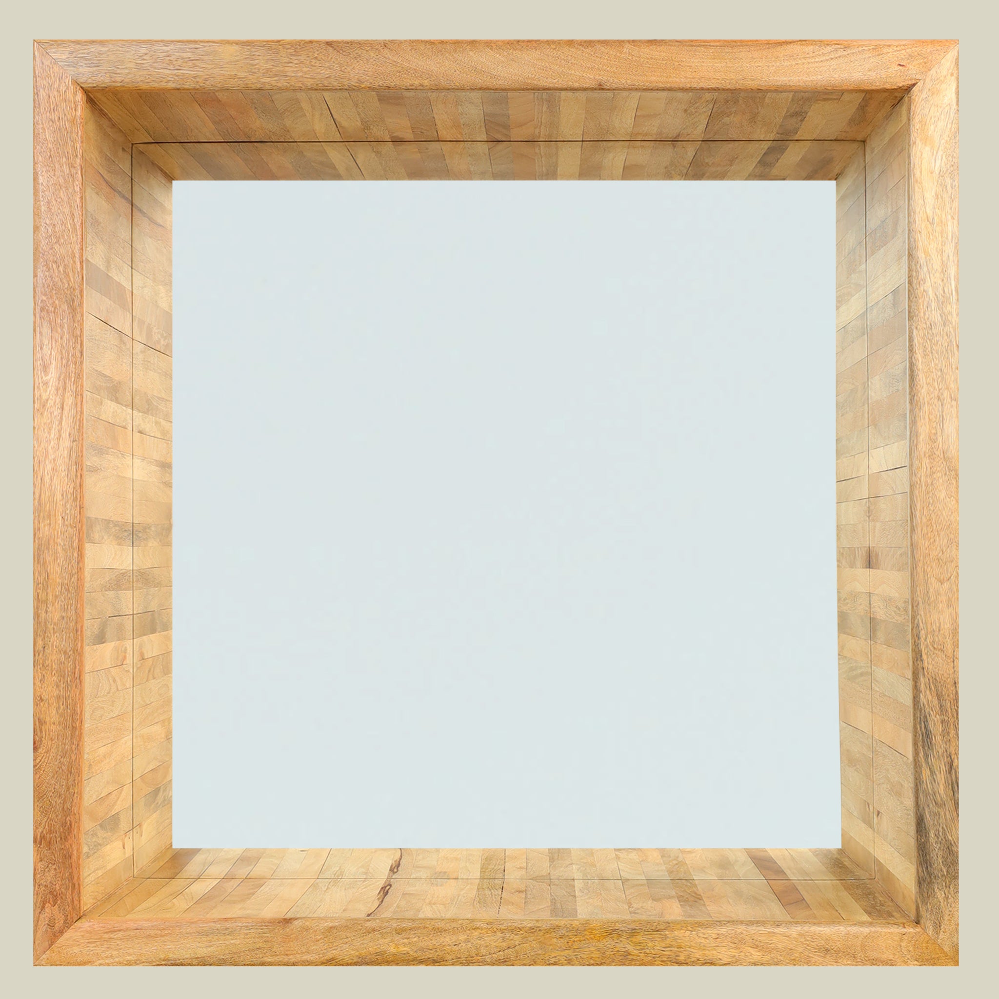 Elevate your interiors with this sophisticated wooden wall mirror featuring a deep, square frame crafted from rich brown wood.