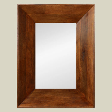 Elevate your living space with this sophisticated rectangular mirror featuring a deep wooden frame in a rich brown finish.