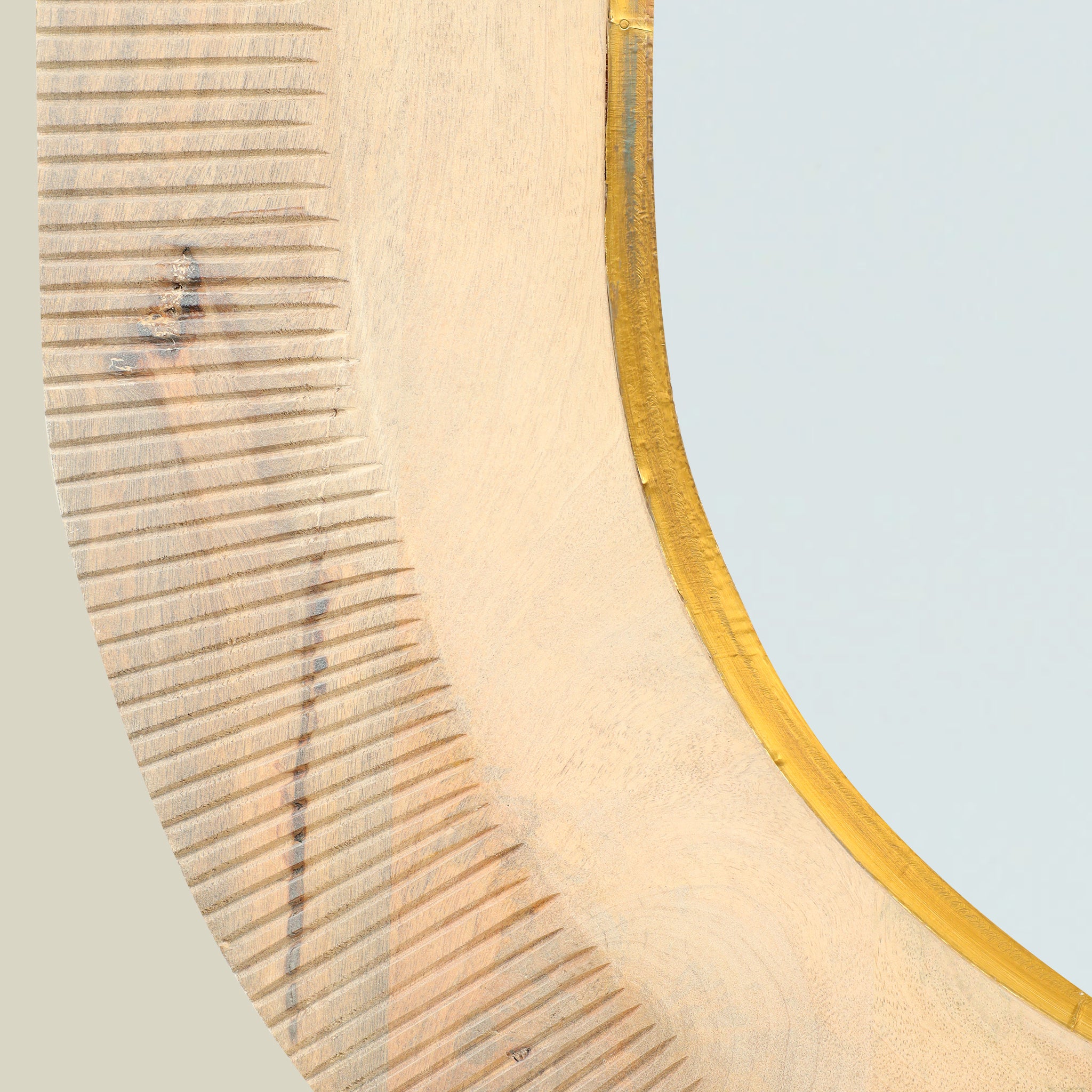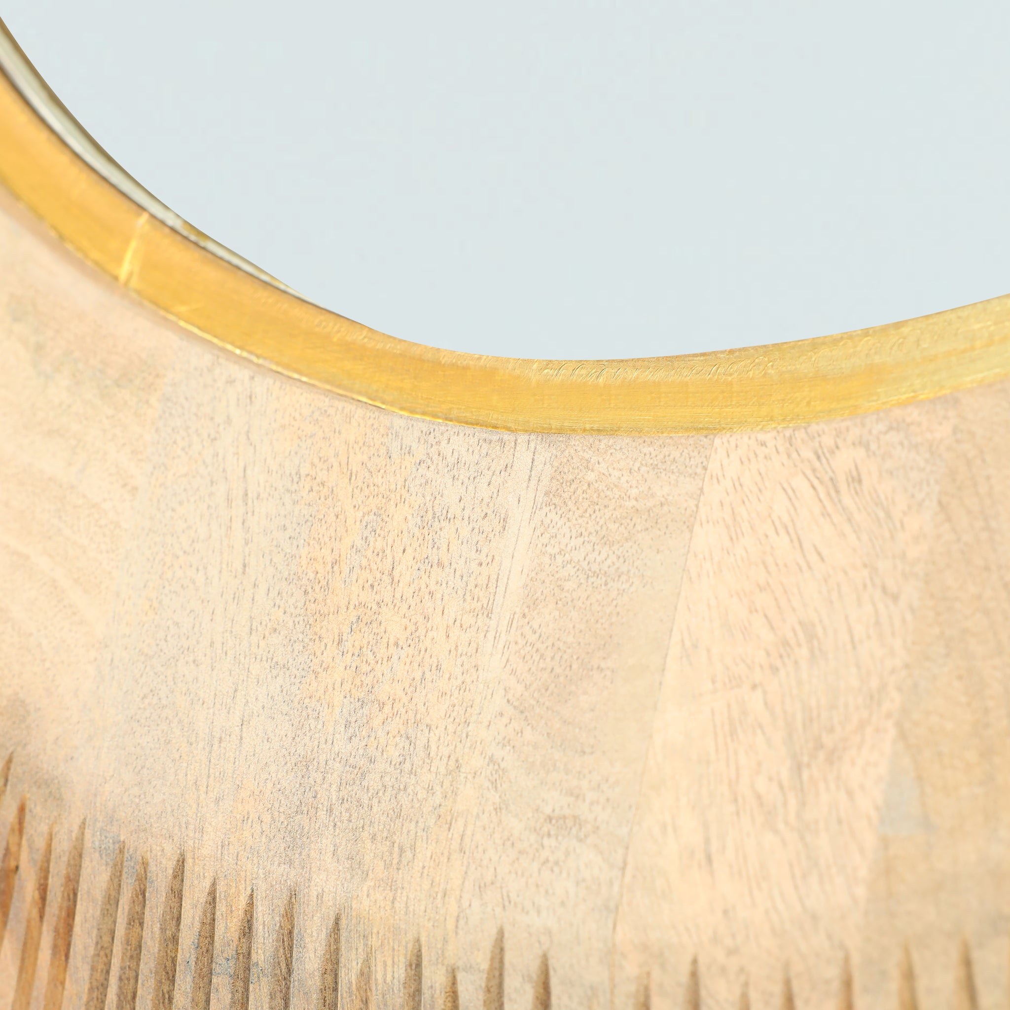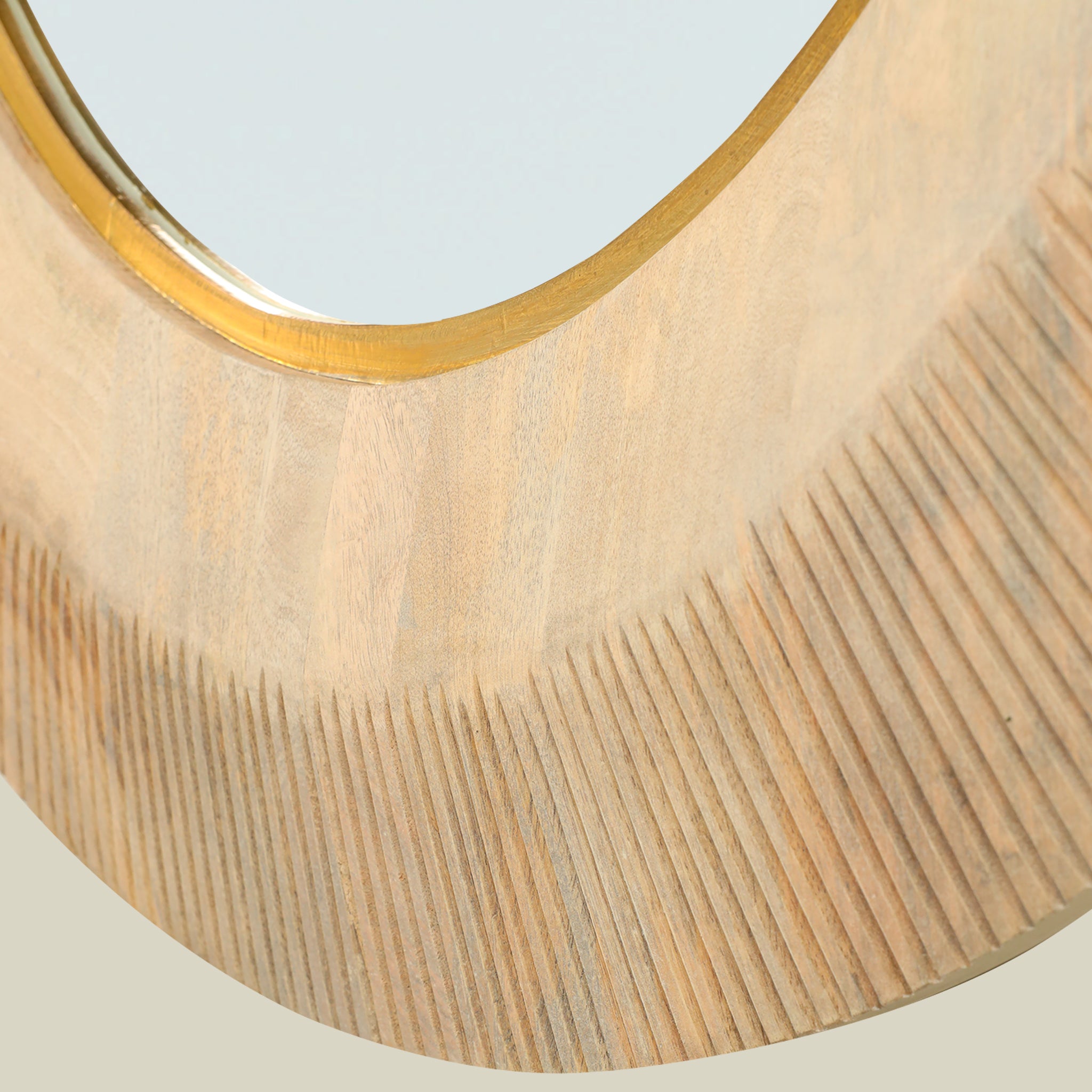 Elevate your space with this elegant wooden mirror featuring a finely carved oval frame.