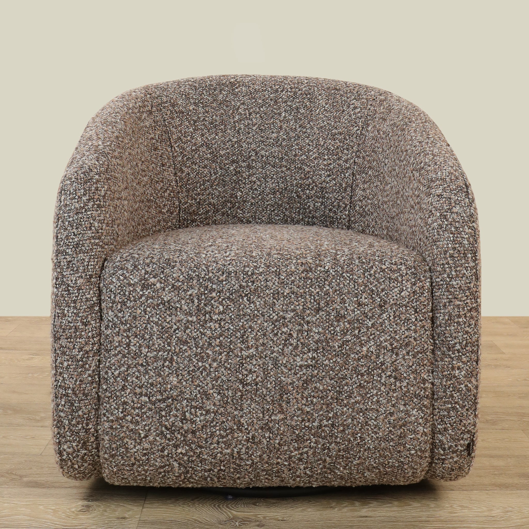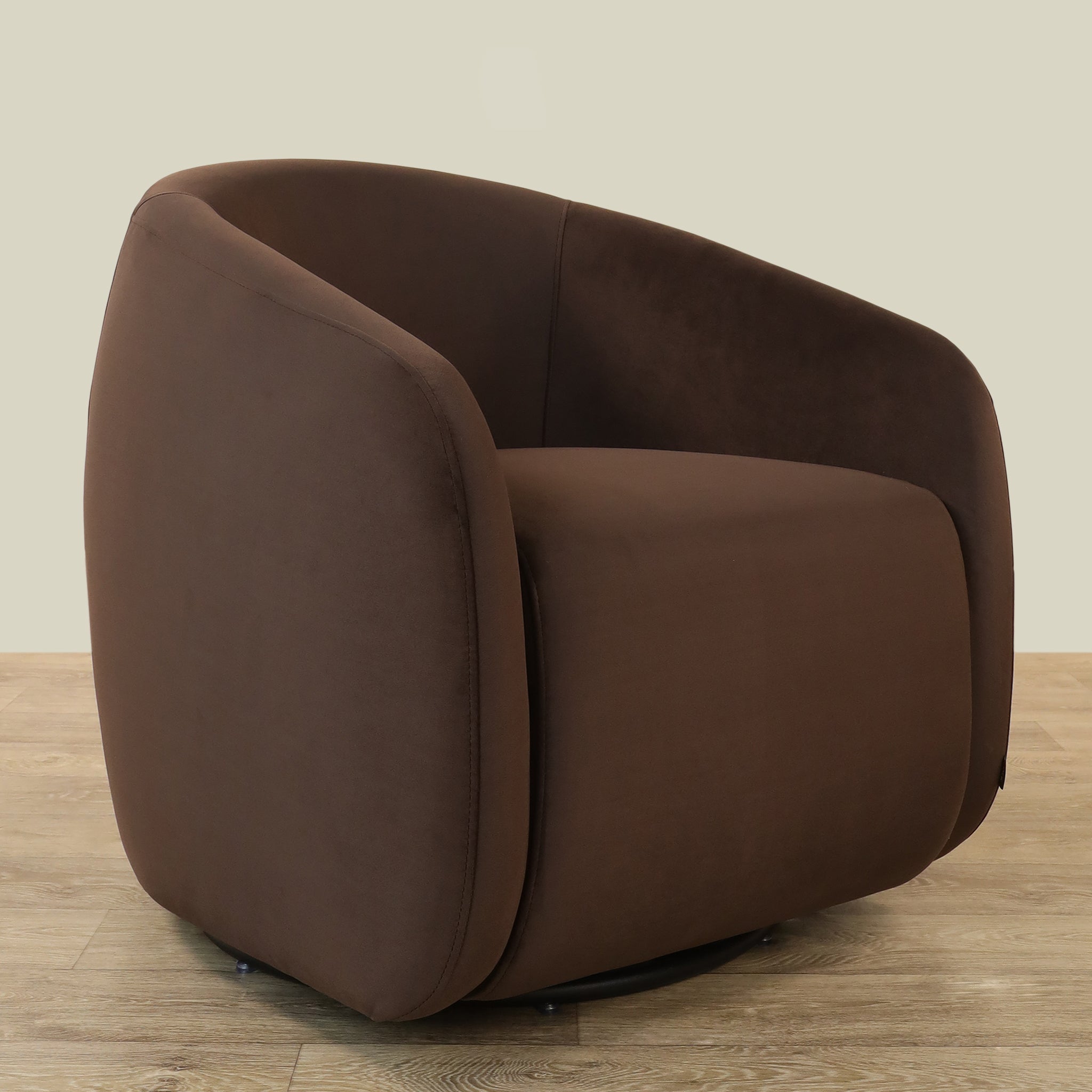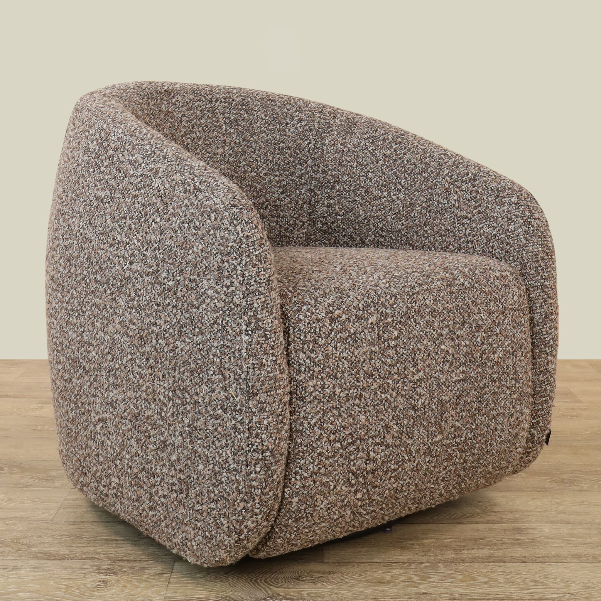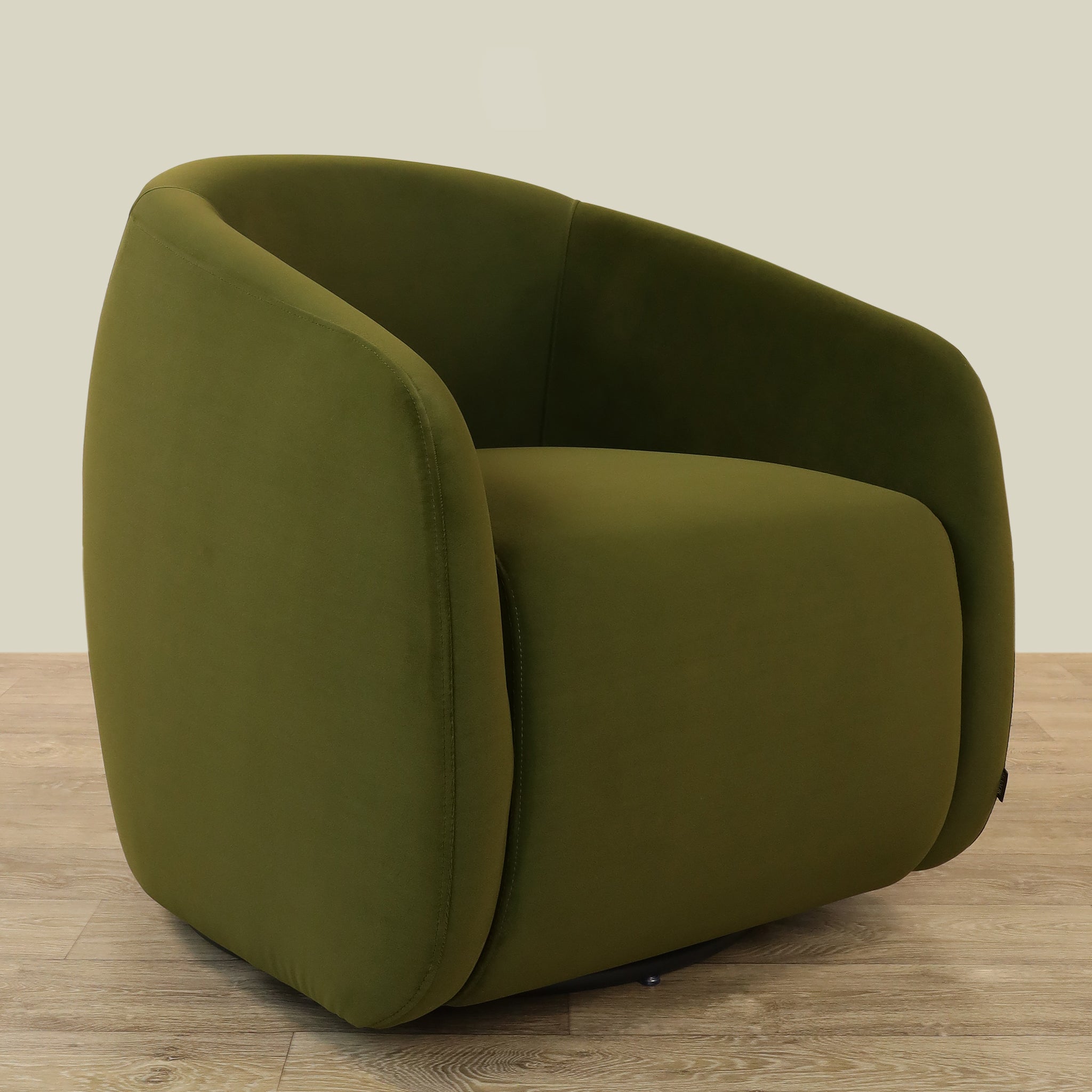 Это изысканное кресло для отдыха сочетает в себе элегантную тканевую обивку с универсальным поворотным основанием, что обеспечивает легкость движений и при этом сохраняет его изысканный силуэт.