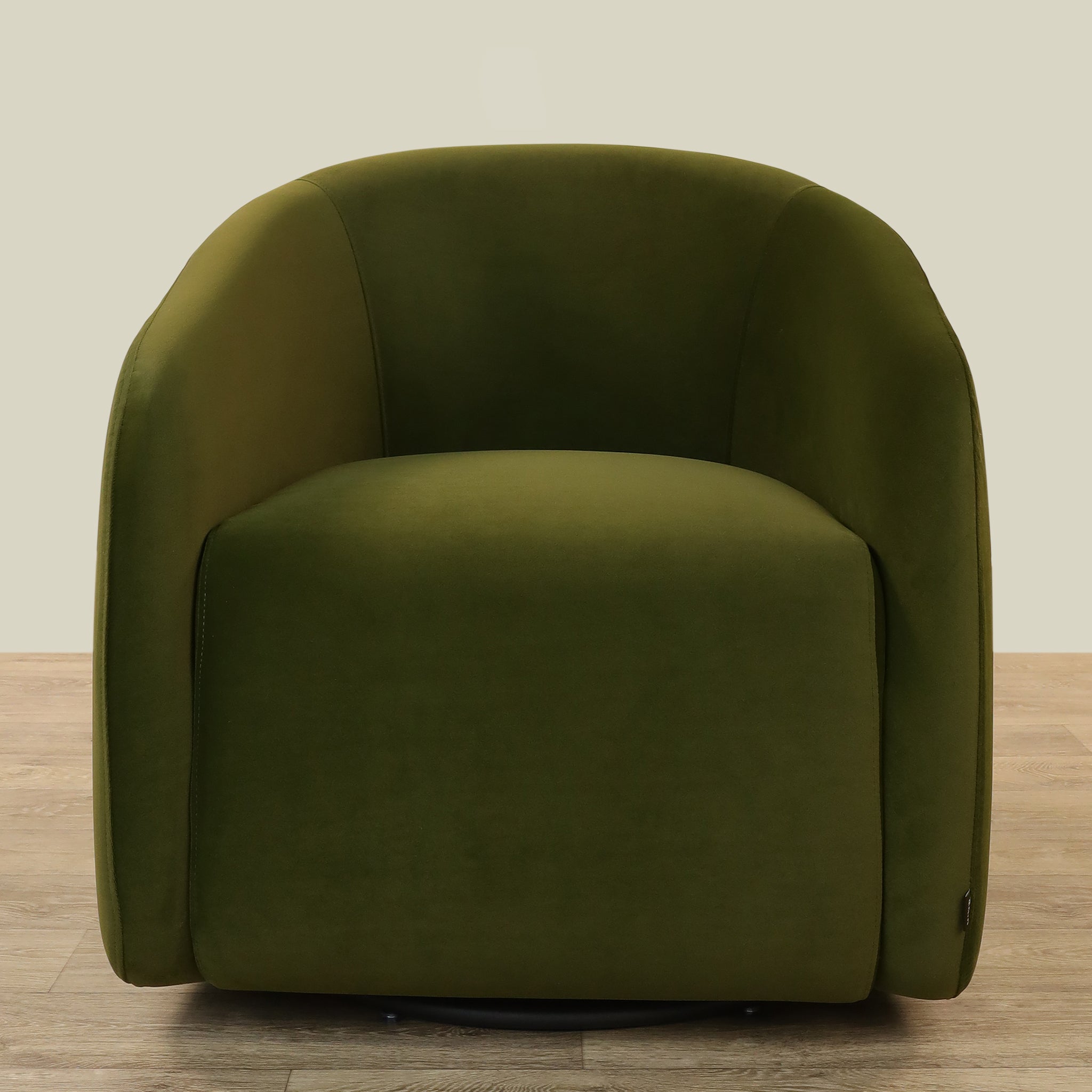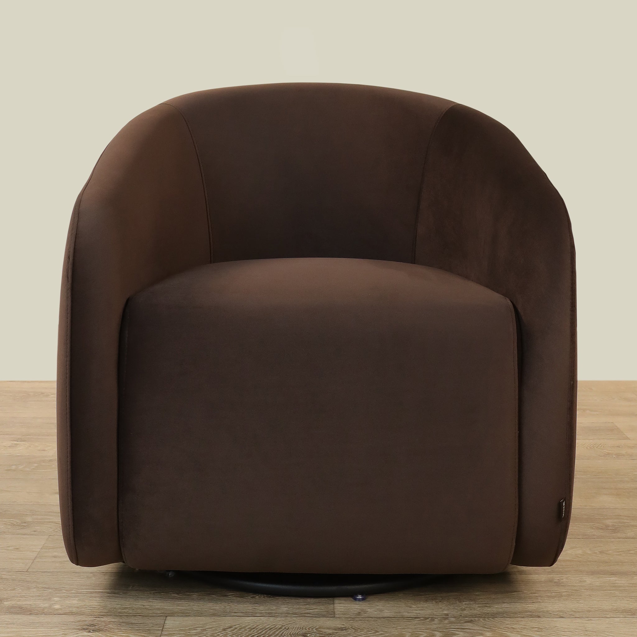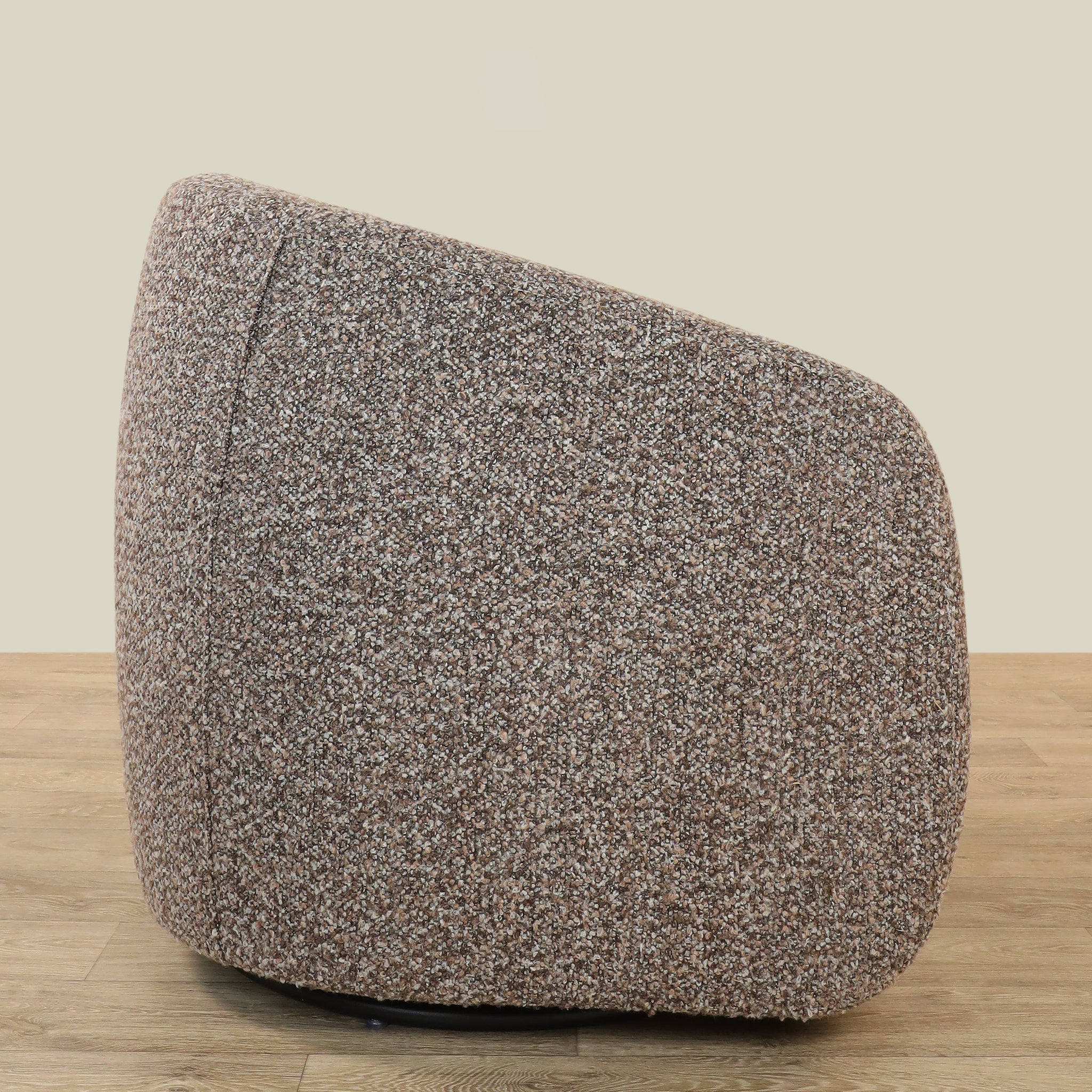 Это изысканное кресло для отдыха сочетает в себе элегантную тканевую обивку с универсальным поворотным основанием, что обеспечивает легкость движений и при этом сохраняет его изысканный силуэт.