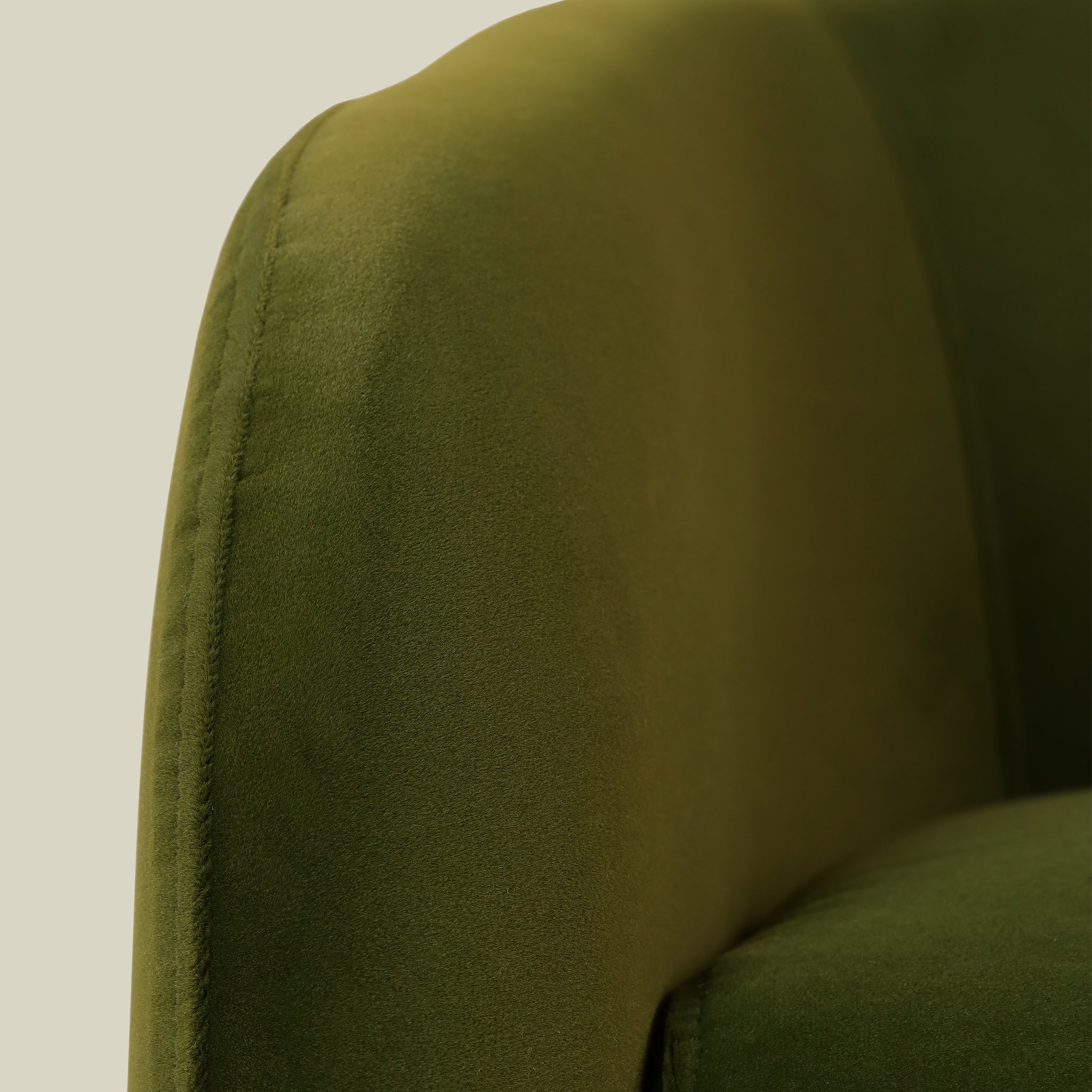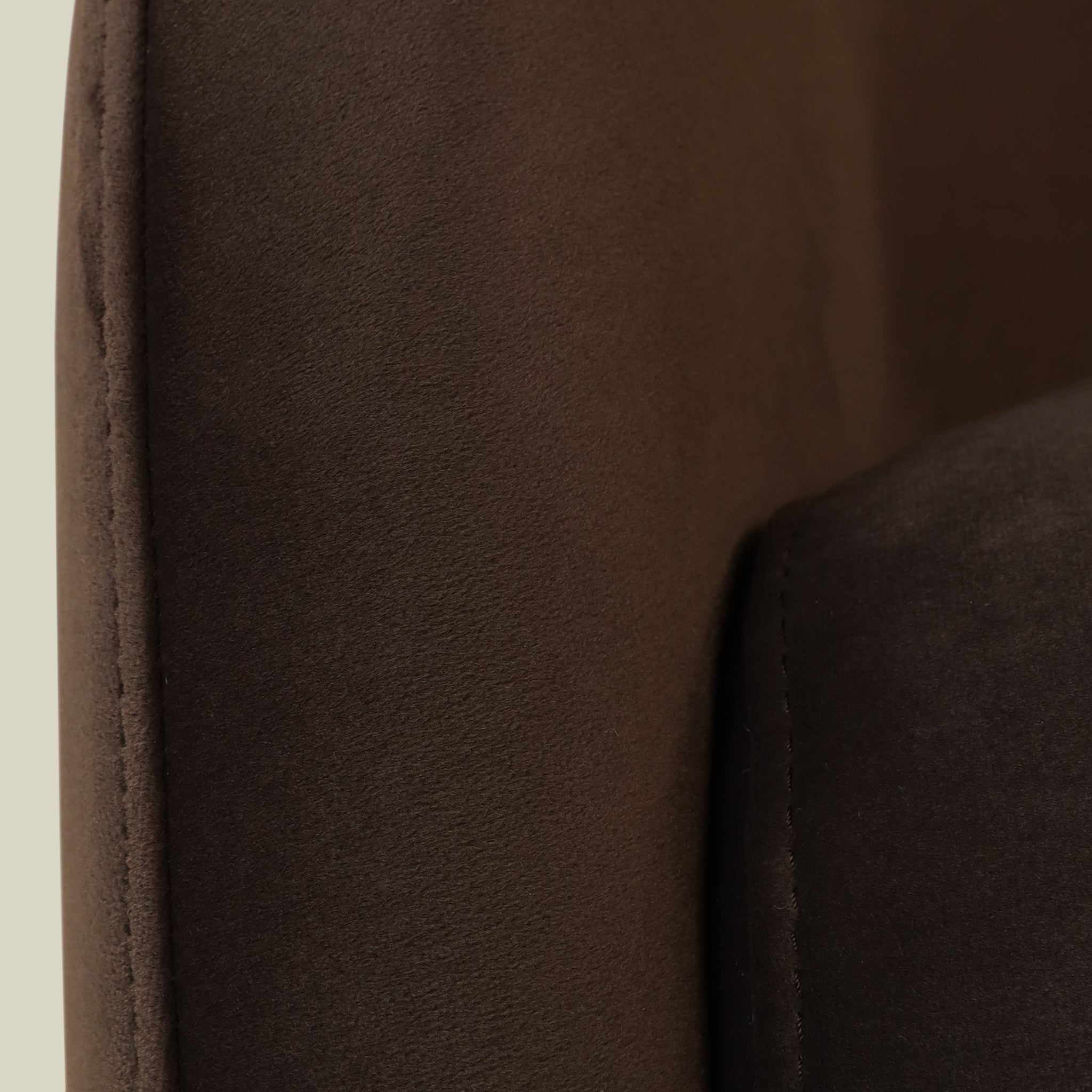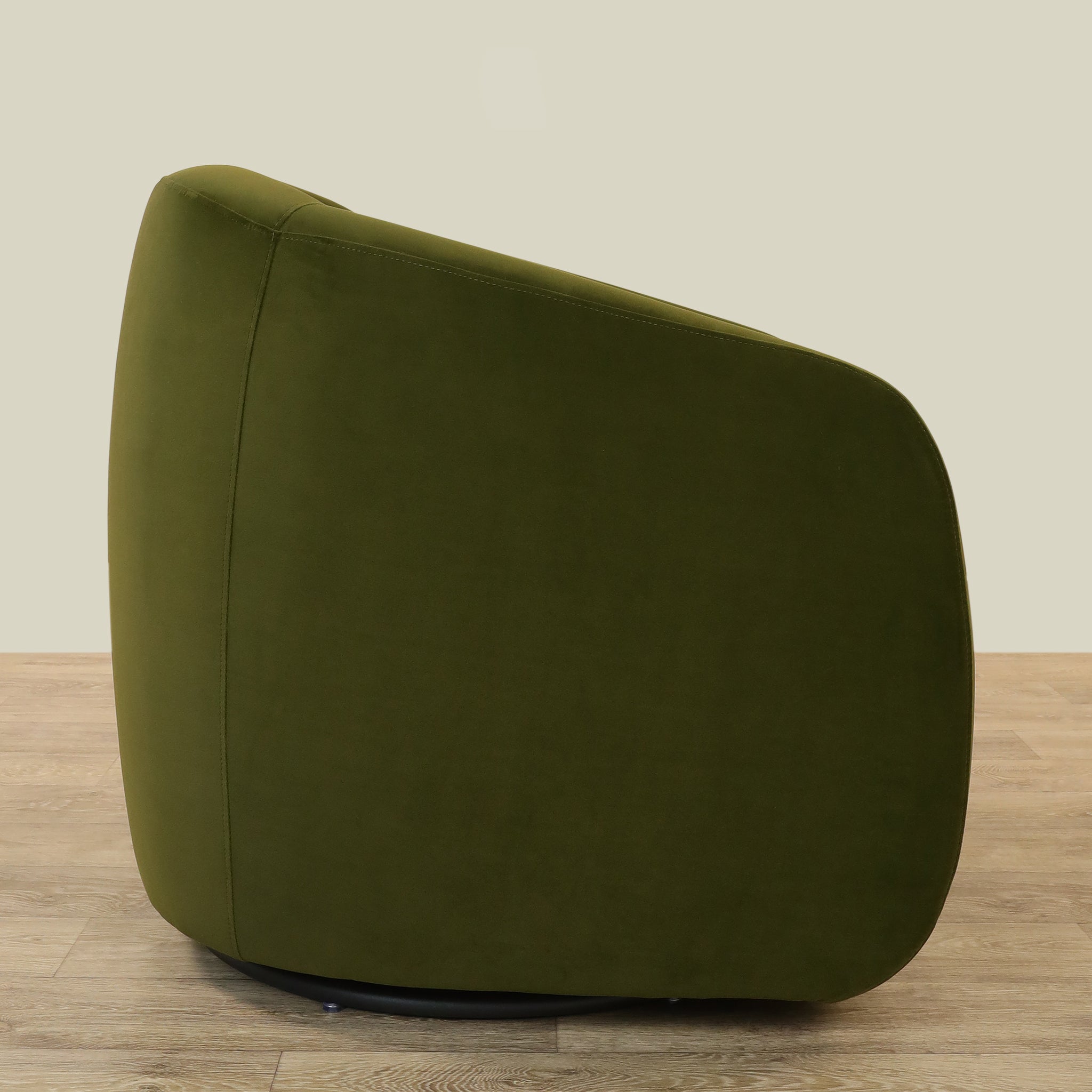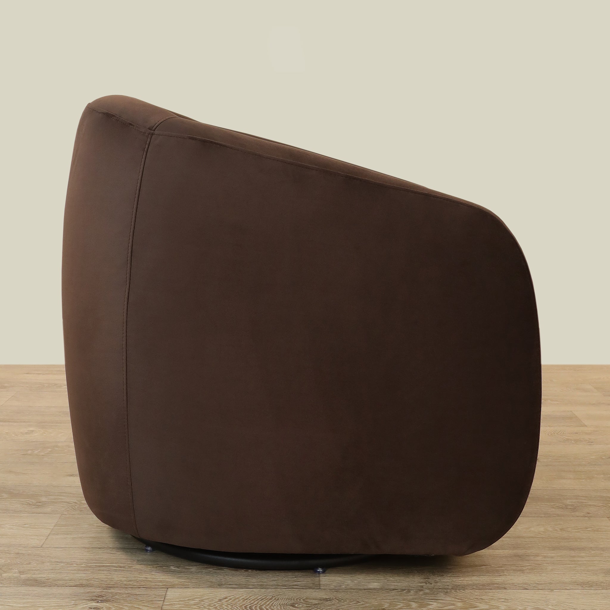 Это изысканное кресло для отдыха сочетает в себе элегантную тканевую обивку с универсальным поворотным основанием, что обеспечивает легкость движений и при этом сохраняет его изысканный силуэт.