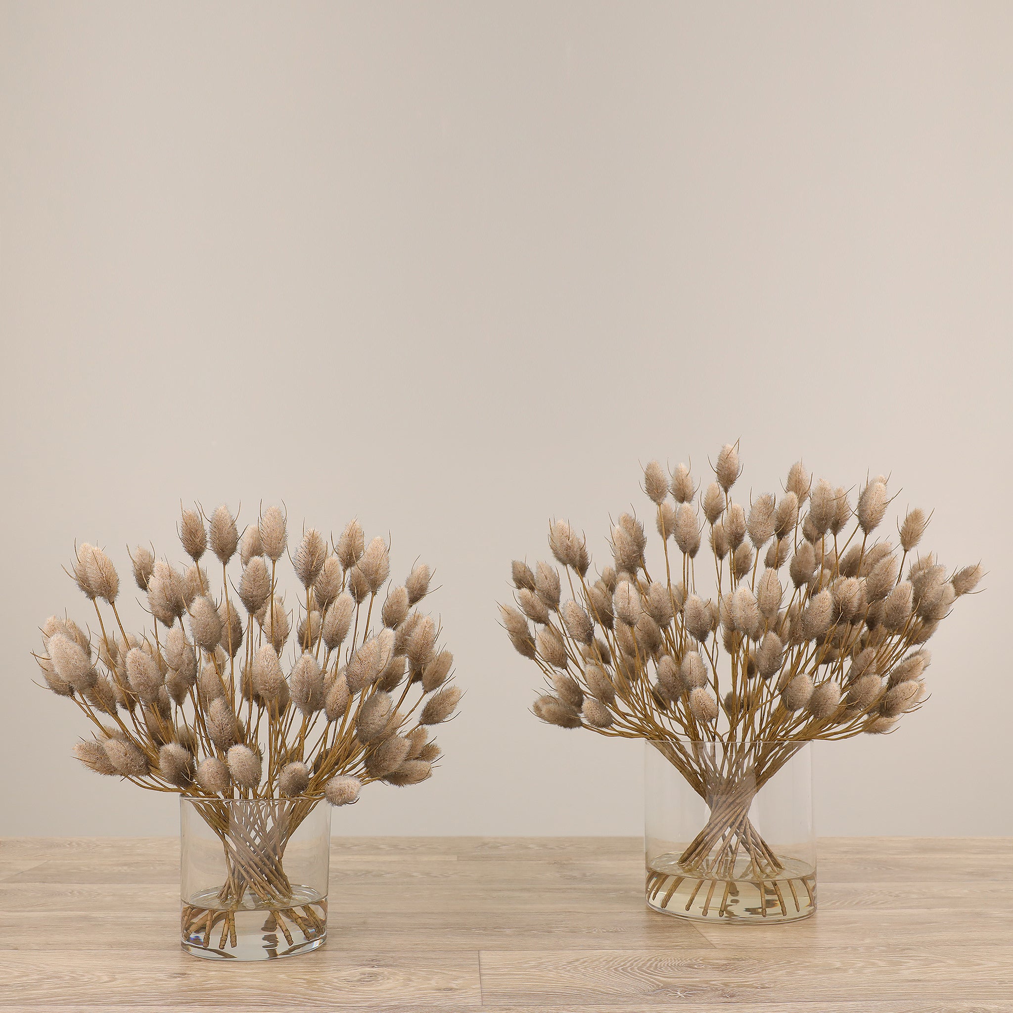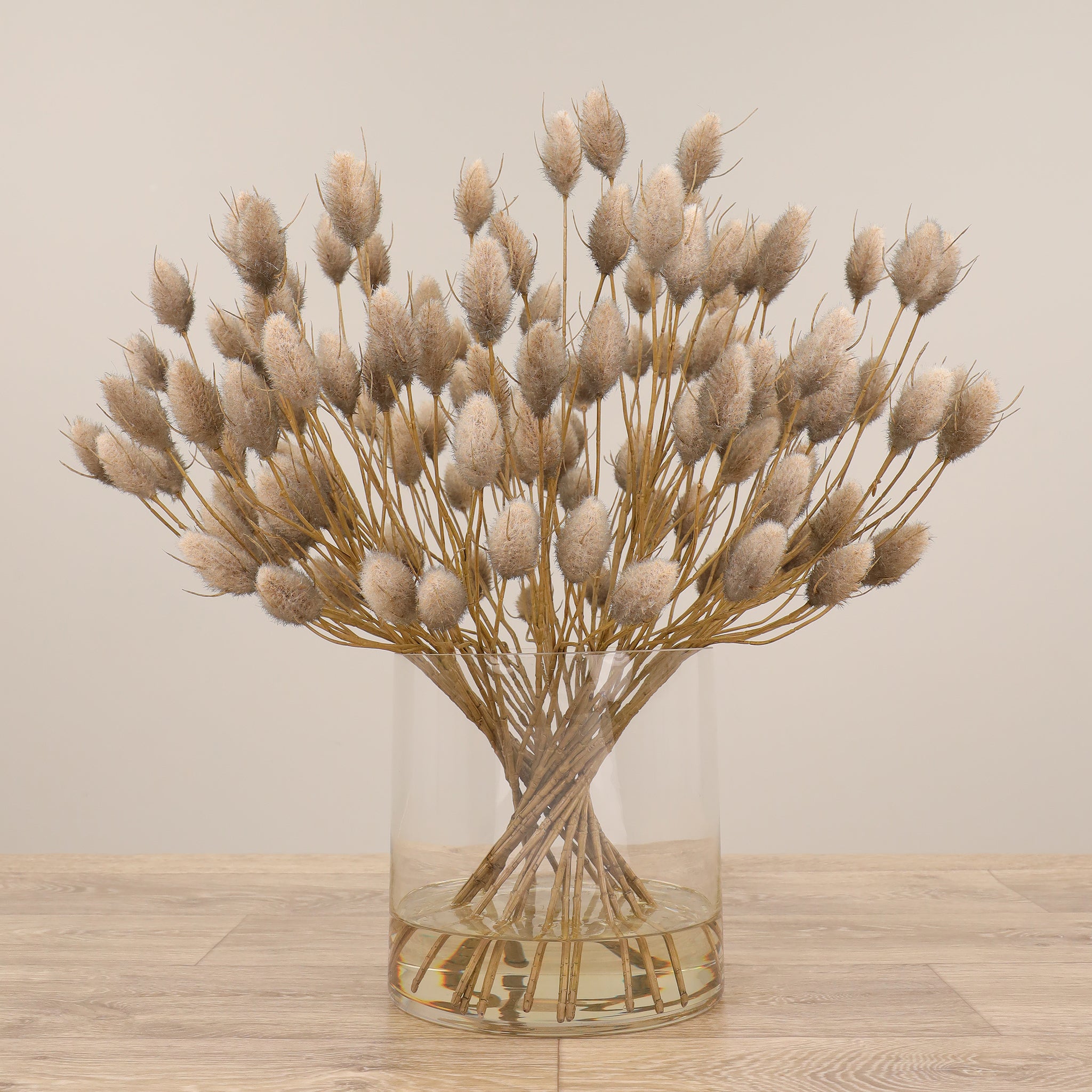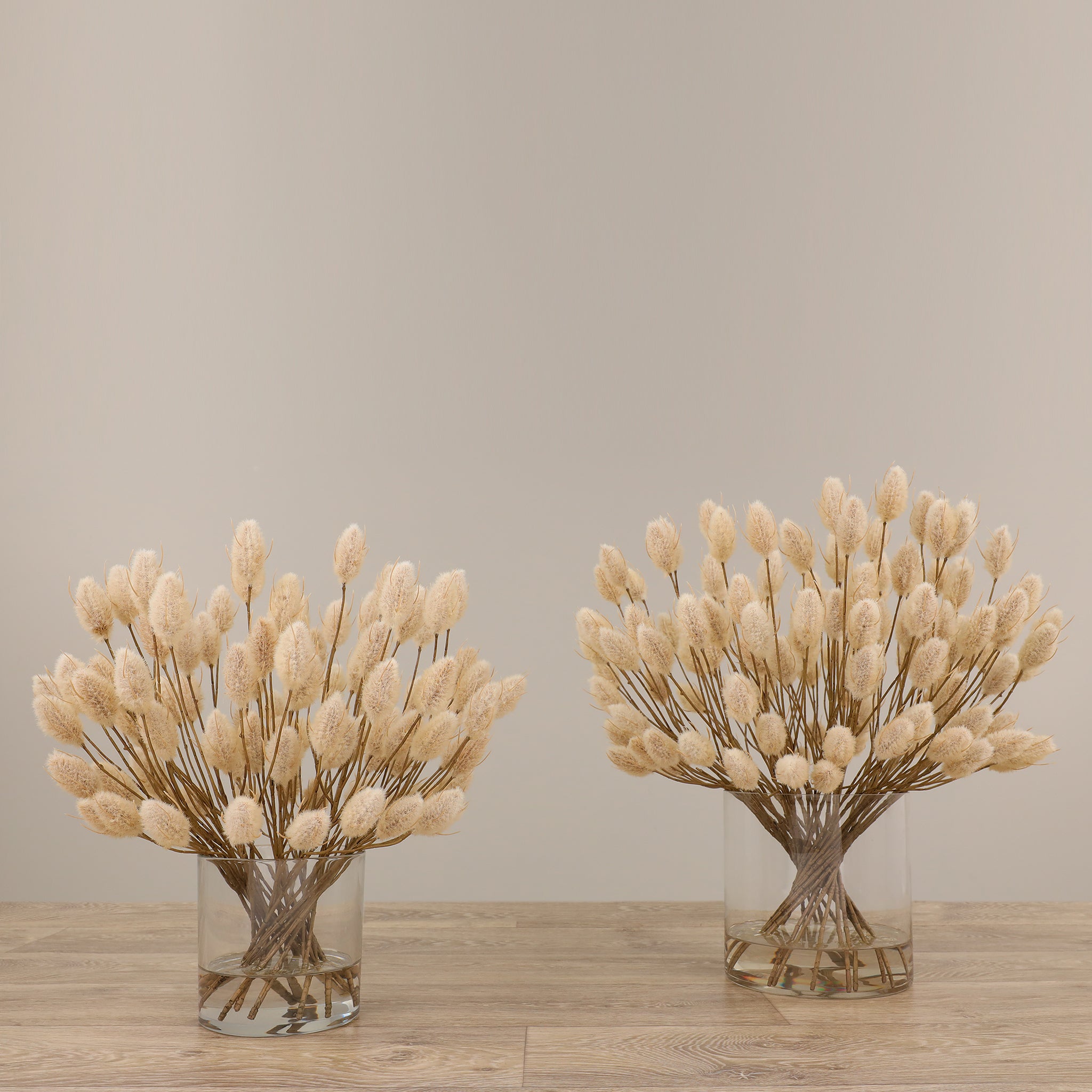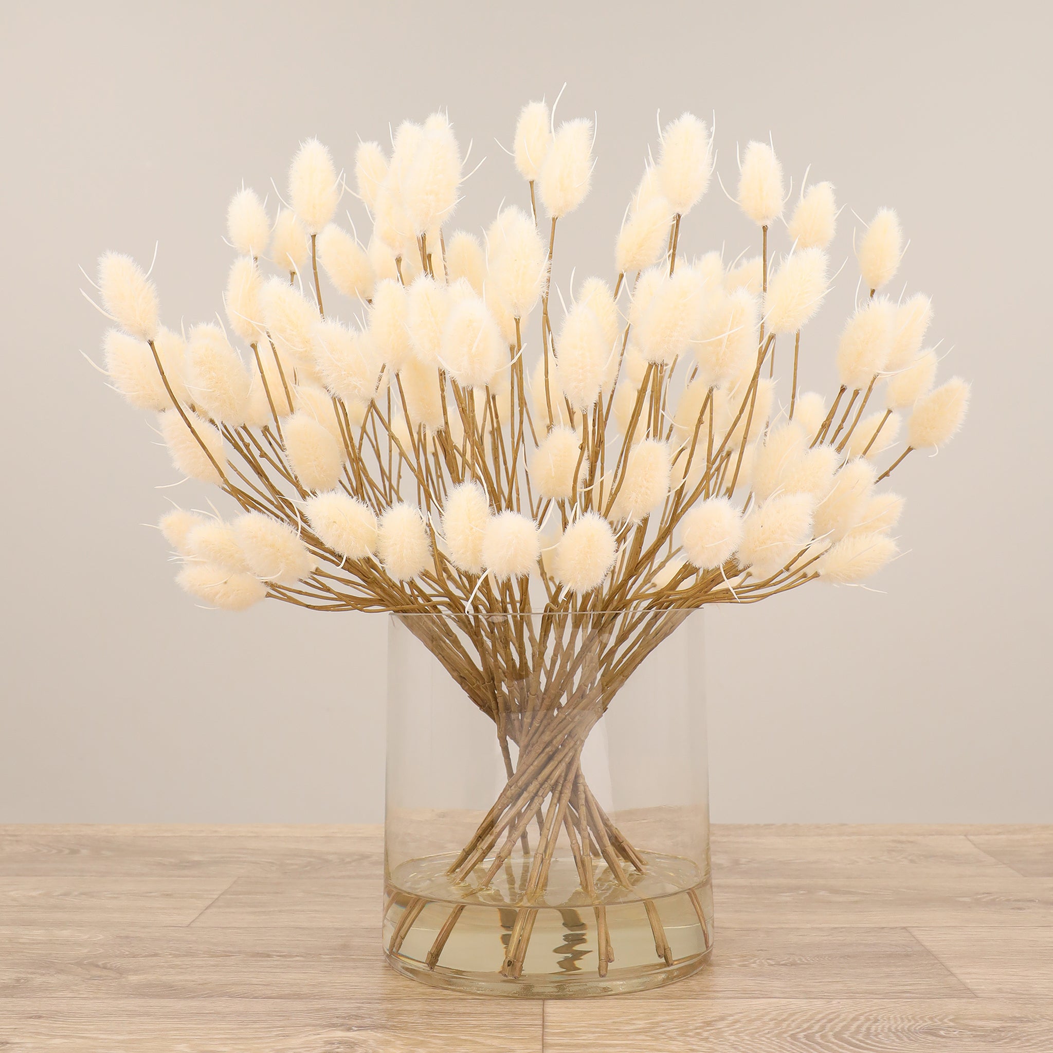 Композиция из искусственных заячьих хвостов в стеклянной вазе