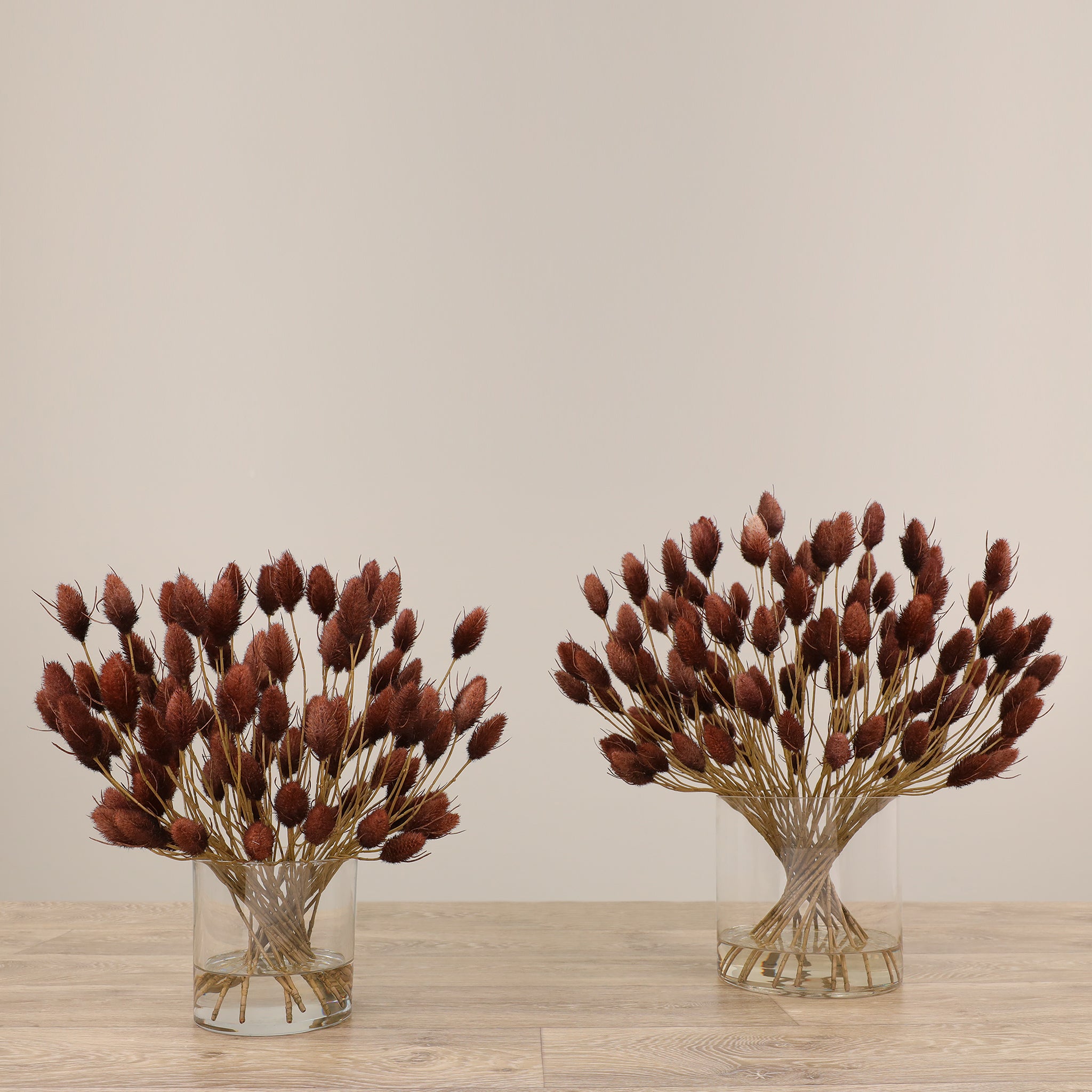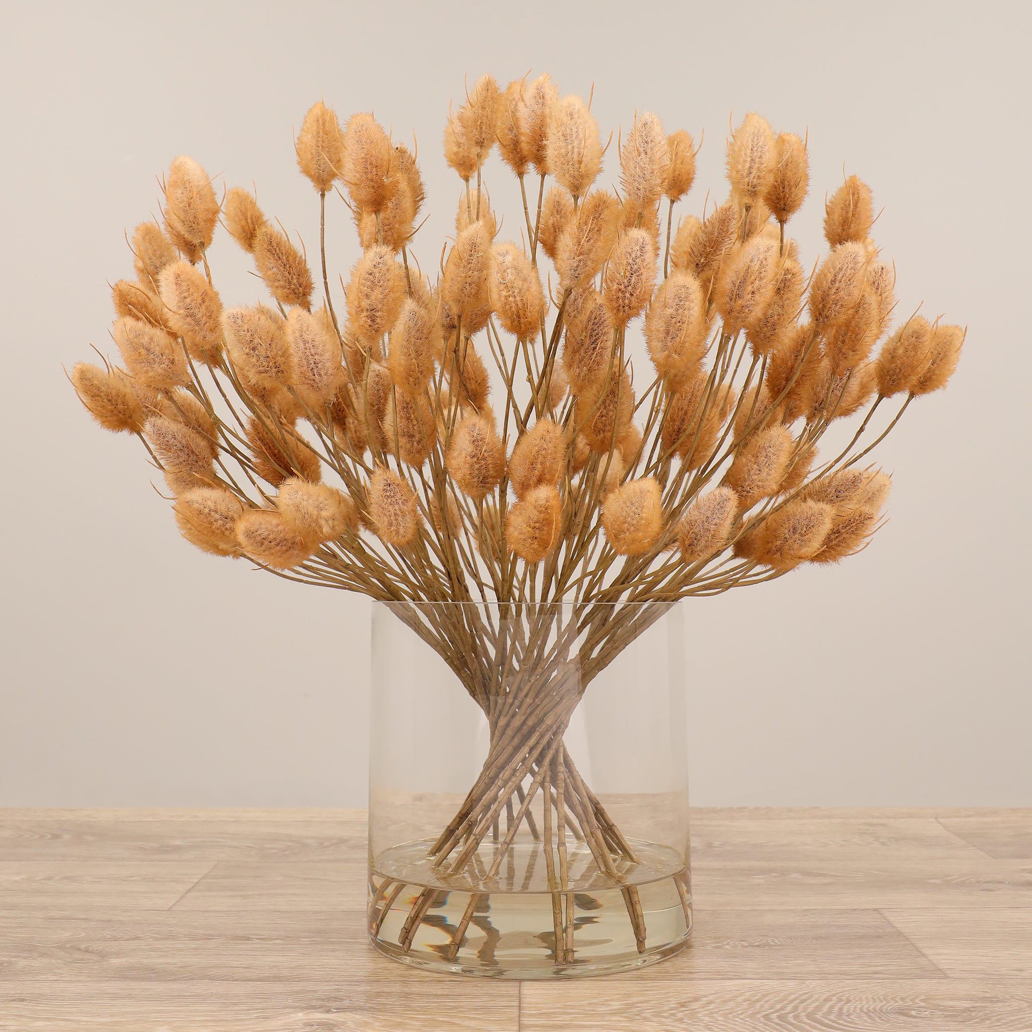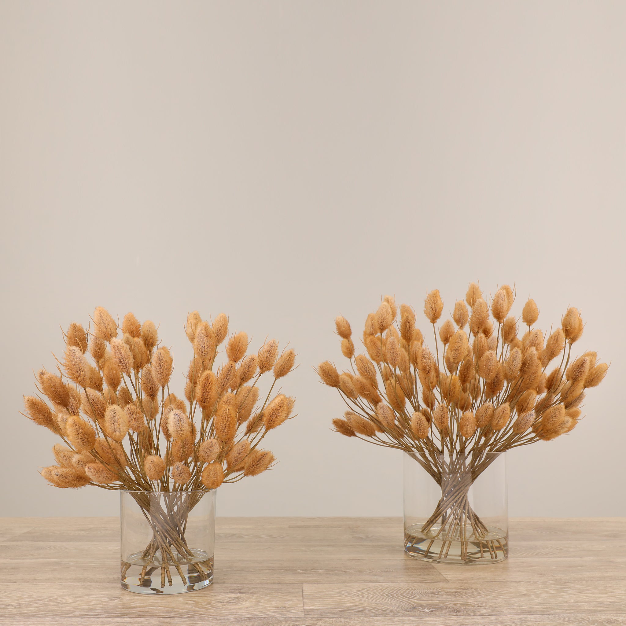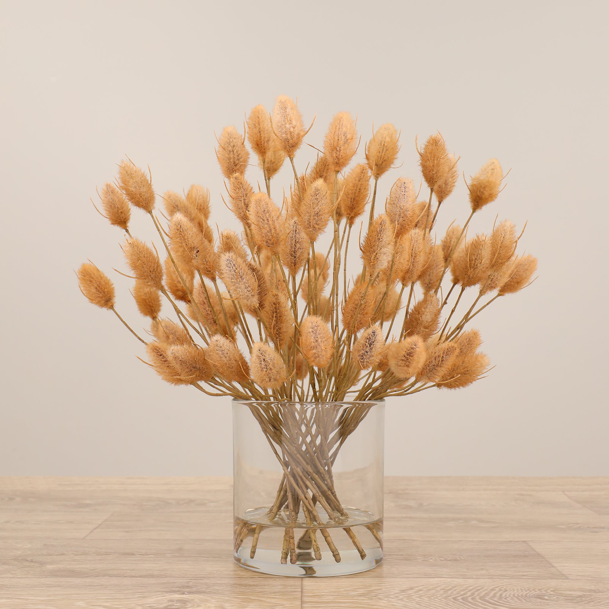 Композиция из искусственных заячьих хвостов в стеклянной вазе
